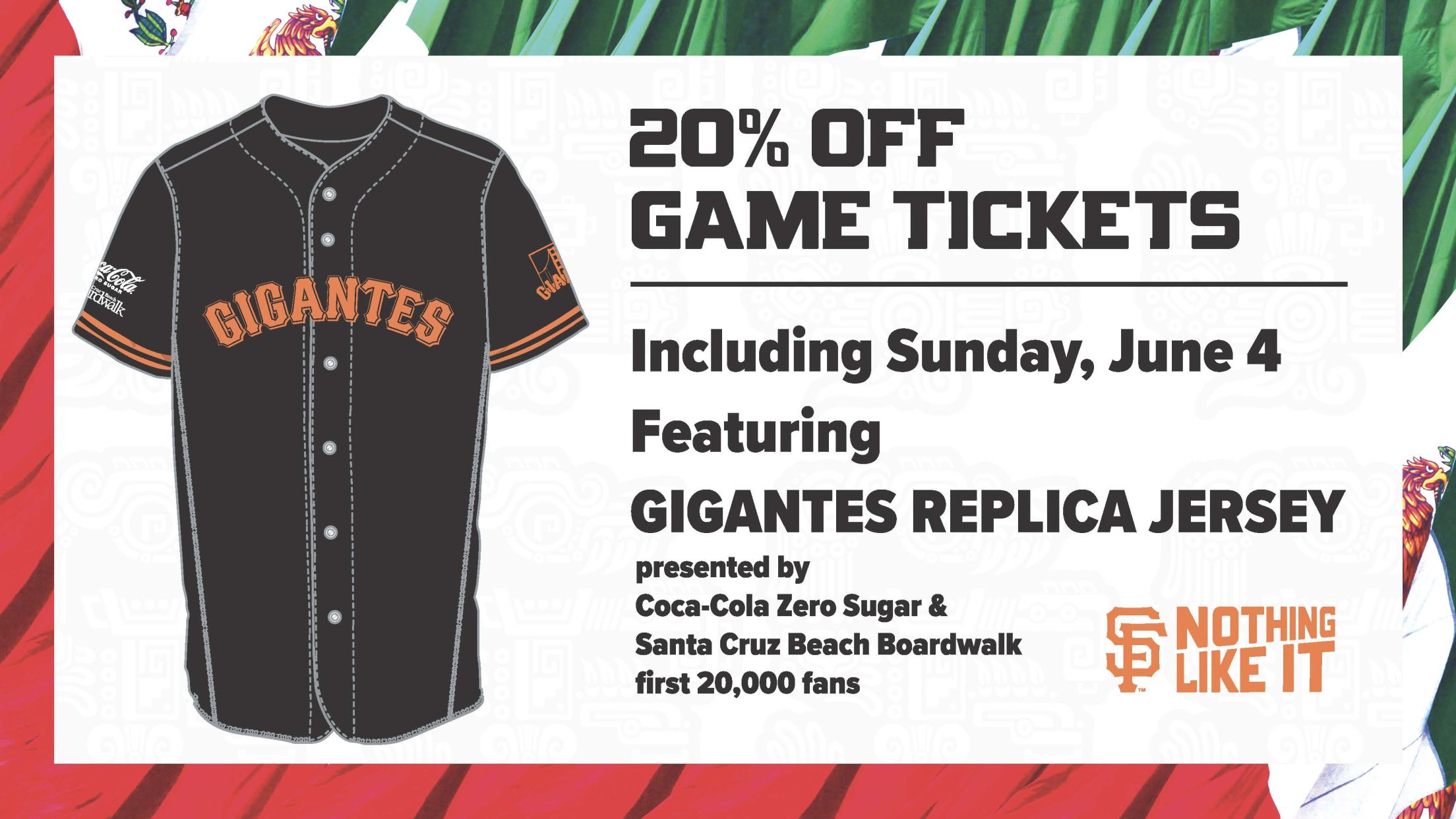 In spirit of the Carnaval celebration, the Giants are offering 20% off tickets to upcoming games, including Sunday, June 4 featuring the Gigantes Replica Jersey presented by Coca-Cola Zero Sugar and Santa Cruz Beach Boardwalk. As the Giants gear up to take on the Baltimore Orioles, the first 20,000 fans at Oracle Park will receive this gate giveaway. Other festivities that day include: