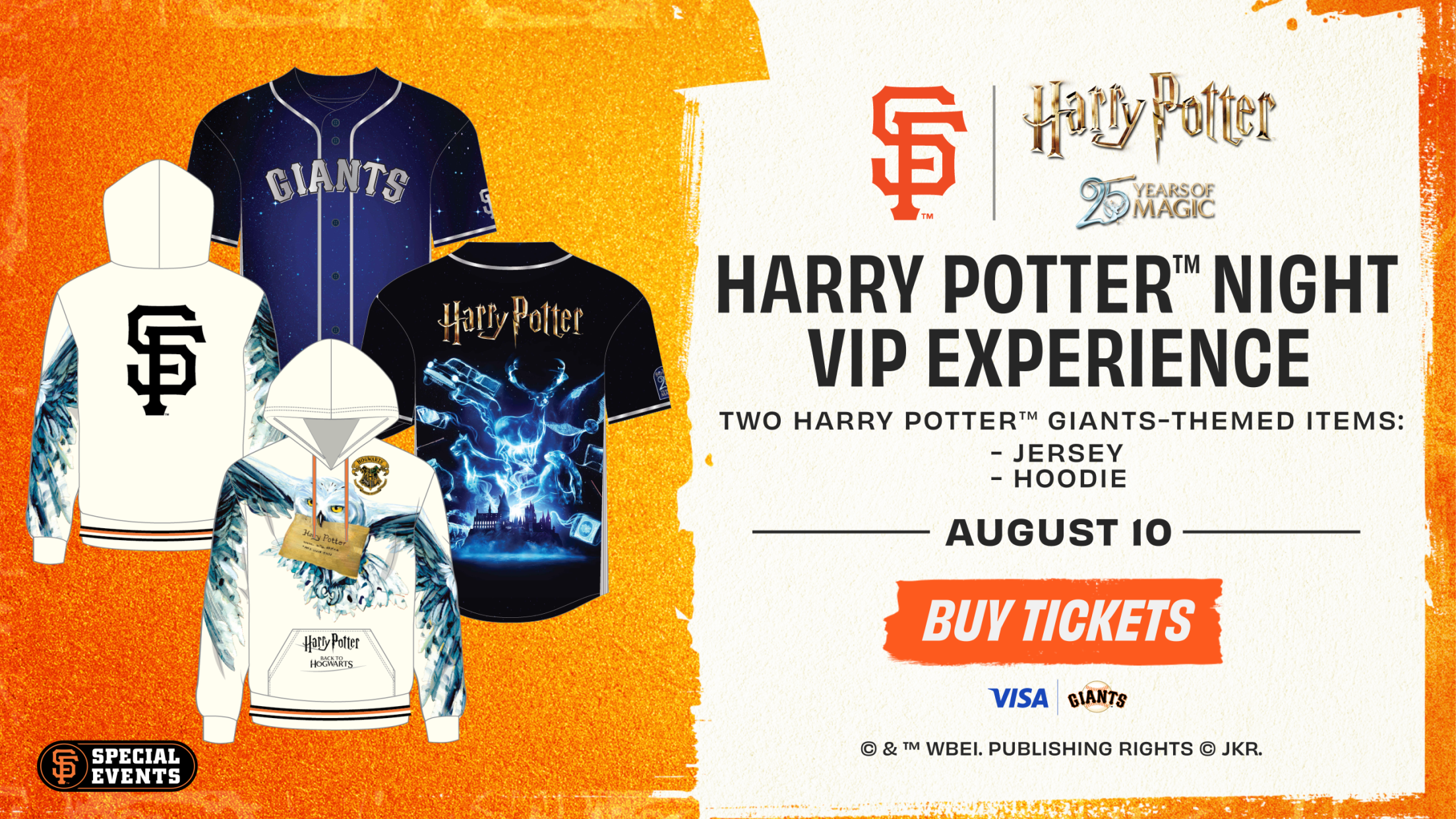 The Giants invite all members of Gryffindor™, Ravenclaw™, Hufflepuff™ and Slytherin™ to an exclusive VIP experience – bringing Harry Potter magic to Oracle Park. Immerse yourself in the magic before first pitch with exclusive photo opportunities, complimentary food and beverages (including beer and wine) and more.