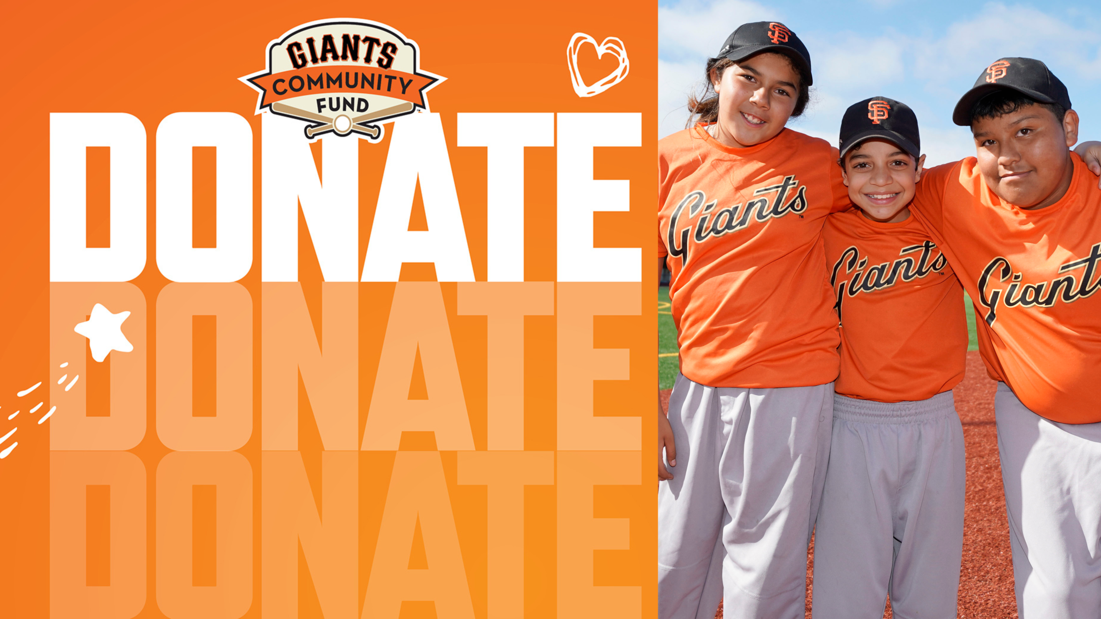 A donation goes twice as far this holiday season. Thanks to The JEM Project, every donation to the Giants Community Fund will be matched up to $75,000 through the end of the year. That's right, a donation of only $50 will support TWO Junior Giants for an entire baseball and softball season.