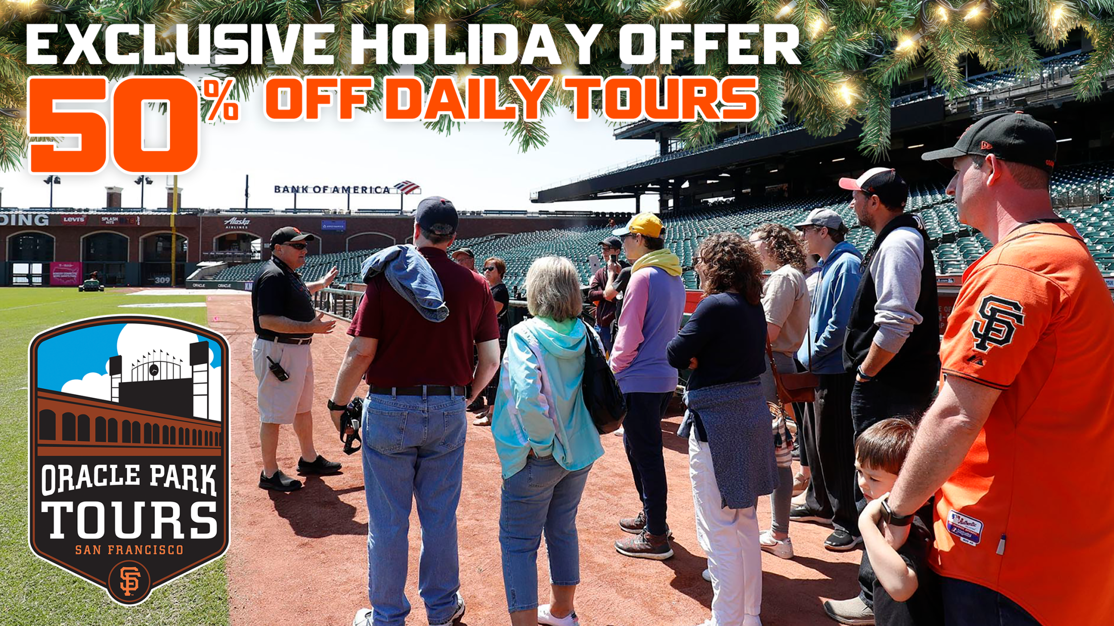 Treat an avid Giants fan in your life to 50% off Daily Tours of Oracle Park, between January and March. Go behind the scenes of the home of the three-time World Series Champion San Francisco Giants. Step onto the field, sit in the dugout and explore Giants history up close.