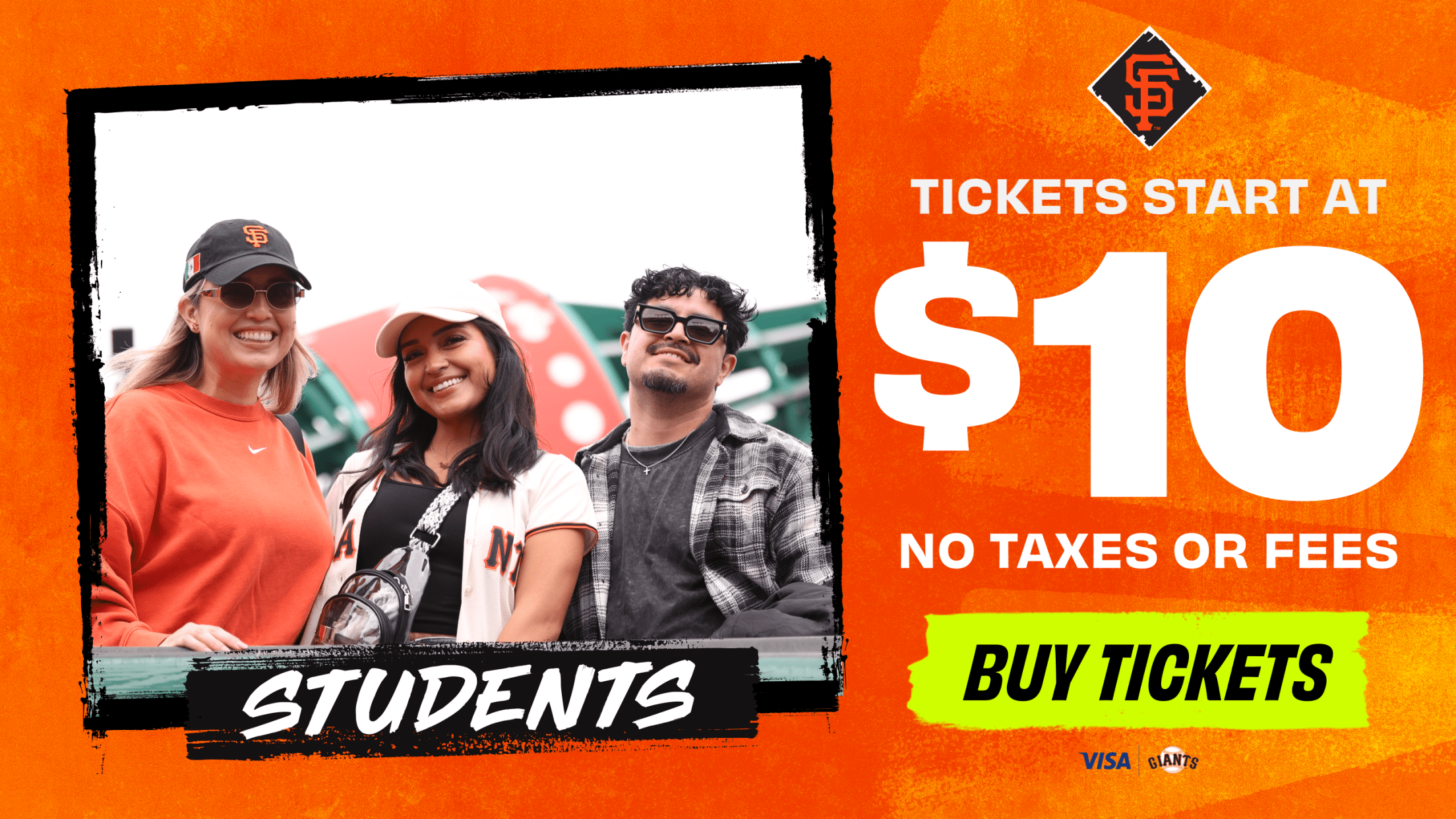 Calling all Bay Area students. Get discounted tickets starting at $10, no added taxes or fees, to all Friday night games (excluding LAD). Plus, save 40% on other select games.