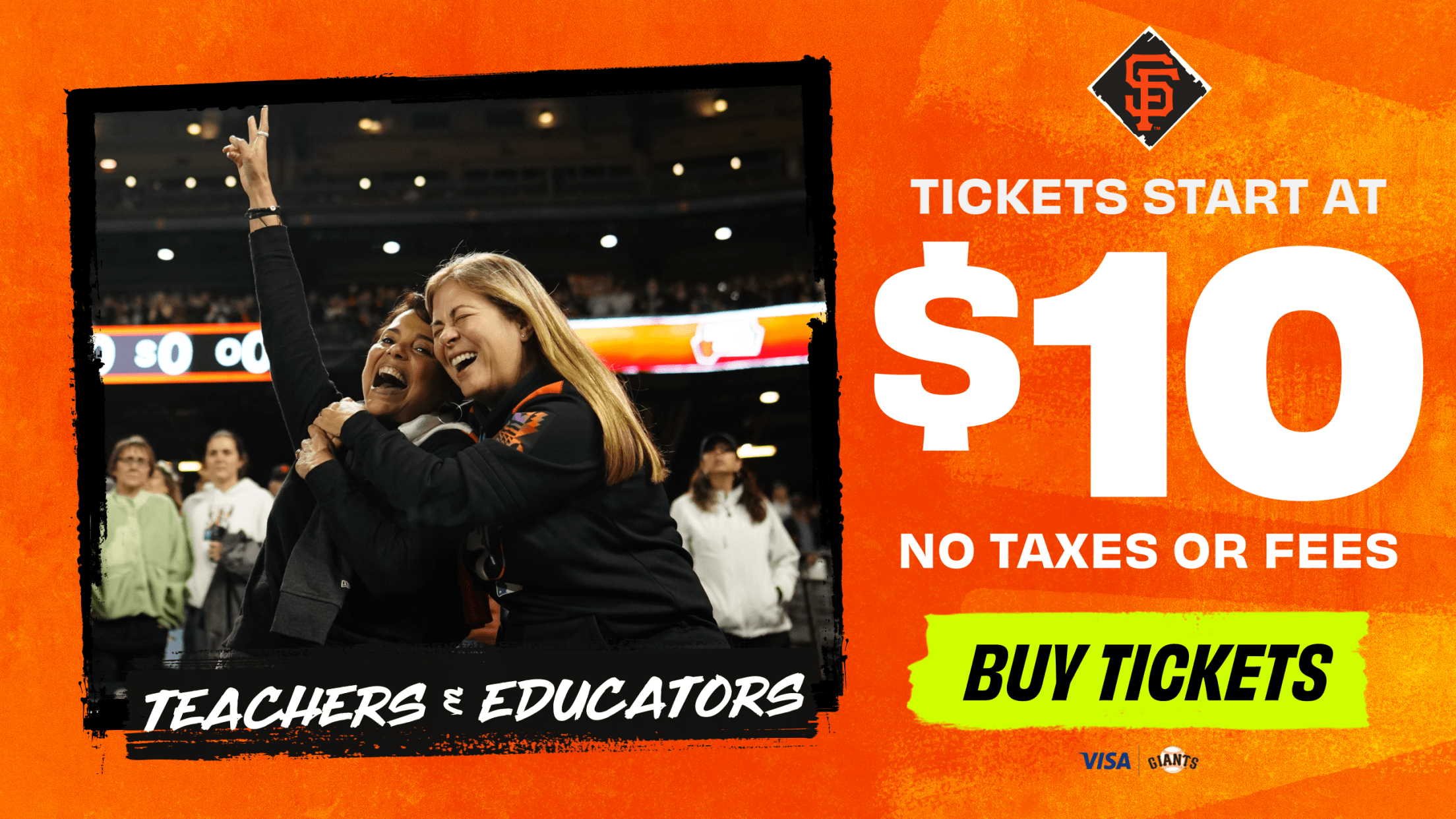 Attention all teachers, enjoy your summer break at Oracle Park. Save up to 40% on select games throughout the season with tickets starting as low as $10. No added taxes or fees.