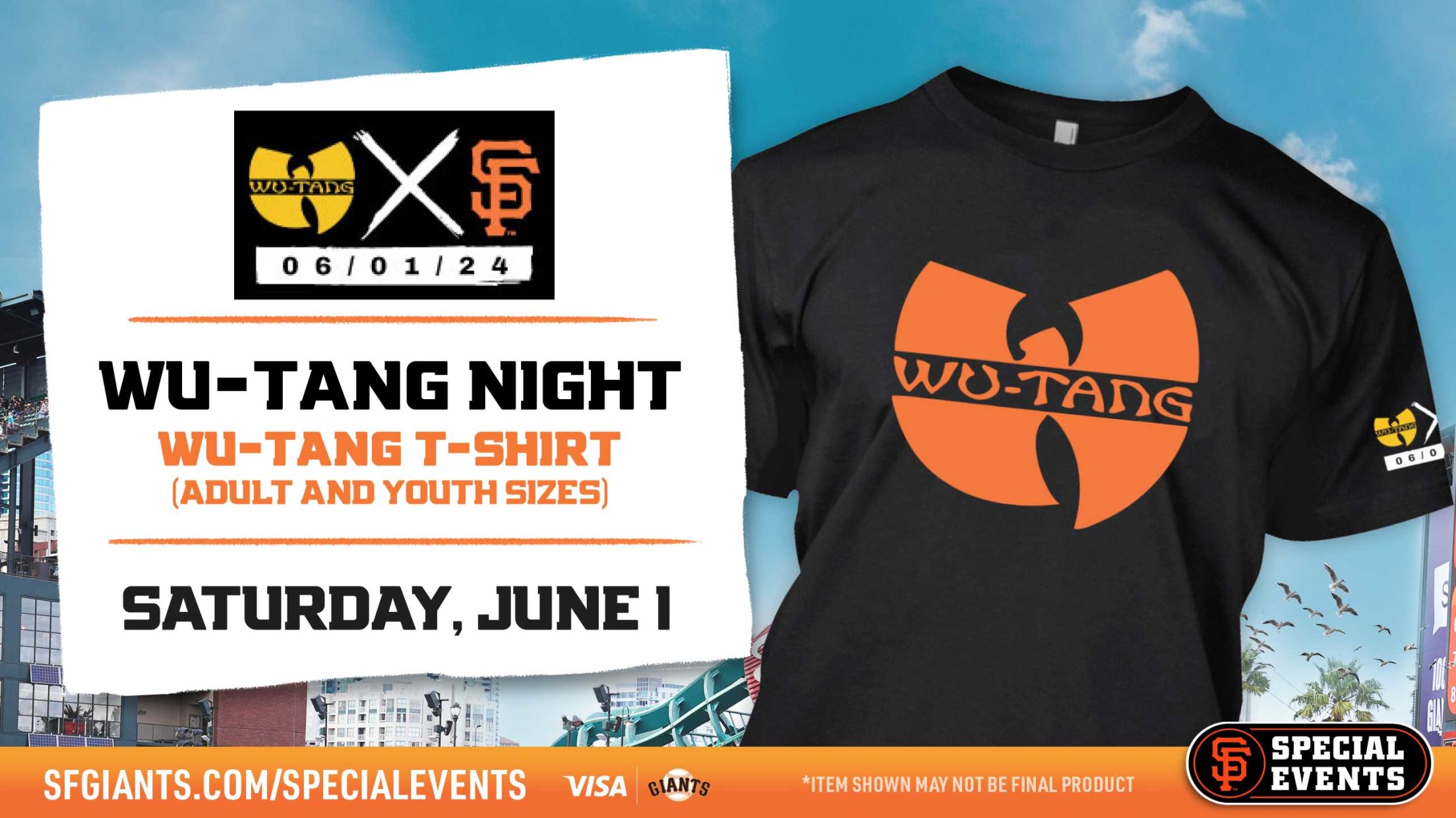 Grab your friends, family and children because... Wu-Tang is for the children. The inaugural Special Event package includes a Giants-themed Wu-Tang T-Shirt, available in both adult and youth sizes, as supplies last.