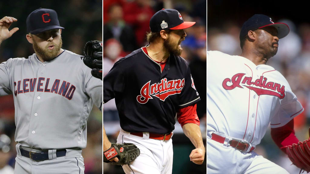 \n","providerName":"Twitter","providerUrl":"https://twitter.com","thumbnail_url":null,"type":"oembed","width":550,"contentType":"rich"},{"__typename":"Markdown","content":"• **Indians' all-time team:** C | 1B | 2B | 3B | SS | LF | CF | RF | DH | RH SP | LH SP\n\n**1.** Cody Allen**, 2012-18** \n_Key fact: Indians’ all-time saves leader_\n\nAllen may not have been as sharp in his last season with the Tribe in 2018, but from ’14-‘17, he was as successful as the team could have asked for. In those four seasons, Allen never posted an ERA above 2.99, fanned 369 batters in 274 1/3 innings, posted a combined 1.097 WHIP, a 2.82 FIP and recorded 120 saves. During the postseason, he was absolutely dominant, making 10 appearances (13 2/3 innings) during the Tribe’s playoff run in ’16 without allowing a run.\n\nAfter a shaky 2018, Allen became a free agent. Despite a 4.70 ERA that year, he ended his seven seasons with Cleveland with a combined 2.98 ERA, averaging 11.5 strikeouts per nine innings. His 149 saves are the most in club history and his 564 strikeouts lead all other Indians relievers. He ranks 15th in franchise history in ERA, ninth in FIP (3.17) and fourth in strikeout percentage (30.9).\n\n“His strikeouts to innings, he's right there with all those \\[top relievers\\],” Indians manager Terry Francona said of Allen in 2015. “Career-wise, his strikeouts to innings is silly.”","type":"text"},{"__typename":"Video","contentDate":"2016-10-26T00:00:00Z","preferredPlaybackScenarioURL({\"preferredPlaybacks\":\"mp4AvcPlayback\"})":"http://mediadownloads.mlb.com/mlbam/mp4/2016/10/26/1209198083/1477457195384/asset_1200K.mp4","type":"video","description":"Cody Allen gets Javier Baez to strike out looking and Addison Russell and Miguel Montero to go down swinging to complete the Tribe's 6-0 win","displayAsVideoGif":false,"duration":"00:00:28","slug":"allen-strikes-out-the-side-c1209198083","tags":[{"__typename":"InternalTag","slug":"hbmig-mmtax-2016","title":"HBmig 2016","type":"unsupported"},{"__typename":"TeamTag","slug":"teamid-114","title":"Cleveland Guardians","team":{"__ref":"Team:114"},"type":"team"},{"__typename":"InternalTag","slug":"hbmig-team-id-114","title":"HBmig 114","type":"unsupported"},{"__typename":"InternalTag","slug":"hbmig-subject-mlbmobile-application-highlight","title":"HBmig MLBMOBILE_APPLICATION_HIGHLIGHT","type":"unsupported"},{"__typename":"GameTag"},{"__typename":"InternalTag","slug":"hbmig-mlbtax-vtp-ws-sponsor","title":"HBmig Johnnie Walker","type":"unsupported"},{"__typename":"InternalTag","slug":"hbmig-combined-media-state-media-archive","title":"HBmig MEDIA_ARCHIVE","type":"unsupported"},{"__typename":"InternalTag","slug":"hbmig-mlbtax-strikeout","title":"HBmig Strikeout","type":"unsupported"},{"__typename":"PersonTag","slug":"playerid-592102","title":"Cody Allen","person":{"__ref":"Person:592102"},"type":"player"},{"__typename":"InternalTag","slug":"hbmig-mlbtax-mm-hightlight-reel","title":"HBmig Highlight Reel","type":"unsupported"},{"__typename":"InternalTag","slug":"hbmig-subject-mlbcom-no-transcode","title":"HBmig MLBCOM_NO_TRANSCODE","type":"unsupported"},{"__typename":"InternalTag","slug":"hbmig-home-team-id-114","title":"HBmig home_team_id: 114","type":"unsupported"},{"__typename":"InternalTag","slug":"hbmig-mmtax-shareable","title":"HBmig FB shareable (internal)","type":"unsupported"},{"__typename":"InternalTag","slug":"hbmig-away-team-id-112","title":"HBmig away_team_id: 112","type":"unsupported"},{"__typename":"InternalTag","slug":"hbmig-subject-mlbcom-top-play","title":"HBmig MLBCOM_TOP_PLAY","type":"unsupported"},{"__typename":"TaxonomyTag","slug":"pitching","title":"pitching","type":"taxonomy"},{"__typename":"TaxonomyTag","slug":"world-series","title":"World Series","type":"taxonomy"},{"__typename":"TaxonomyTag","slug":"highlight","title":"highlight","type":"taxonomy"}],"thumbnail":{"__typename":"Thumbnail","templateUrl":"https://img.mlbstatic.com/mlb-images/image/private/{formatInstructions}/mlb/xghlfobwkkurjzaab8aq"},"title":"Allen strikes out the side","relativeSiteUrl":"/video/allen-strikes-out-the-side-c1209198083"},{"__typename":"Markdown","content":"**2\\.** Doug Jones**, 1986-91, ‘98** \n_Key fact: Owns third-most saves and second-best bWAR of Indians relievers_\n\nDuring his first stint in Cleveland, Jones was a three-time All-Star and received MVP votes after the 1988 and ’90 seasons. During those three All-Star years, Jones’ highest ERA was 2.56 and he made more than 50 appearances. His 129 saves during his Indians tenure (with one coming in ‘98) was the club record until 2006.\n\nJones’ 10.7 bWAR and 2.64 FIP are the second highest among relievers in club history. His 5.5 walk percentage is the fourth lowest, while his 367 strikeouts rank ninth and his 3.06 ERA is tied for 17th. His success stemmed from his ability to change speeds, as he was often known for his “slow, slower, slowest” method of attacking hitters. It was an approach that served him well enough to extend his career into his 40s, rejoining the Tribe at age 41 before he played two more seasons in Oakland, ending his career at 43.","type":"text"},{"__typename":"Image","caption":null,"contextualCaption":null,"contextualAspectRatio":null,"credit":null,"contentType":"Photography","format":"jpg","templateUrl":"https://img.mlbstatic.com/mlb-images/image/private/{formatInstructions}/mlb/lhynajf47jftmfzsdm7y","type":"image"},{"__typename":"Markdown","content":"**3\\.** Andrew Miller**, 2016-18** \n_Key fact: Leads all Tribe relievers in FIP_\n\nMiller may not have been around Cleveland for long, but he certainly made his time count. Like Allen, Miller’s 2018 season wasn’t up to par with his previous two, posting a 4.24 ERA in 37 games, but his dominance in ’16 and ’17 was enough to earn his spot on the list. The left-hander was acquired from the Yankees at the ’16 Trade Deadline, and he went on to post a 1.55 ERA in 26 appearances (29 innings) 