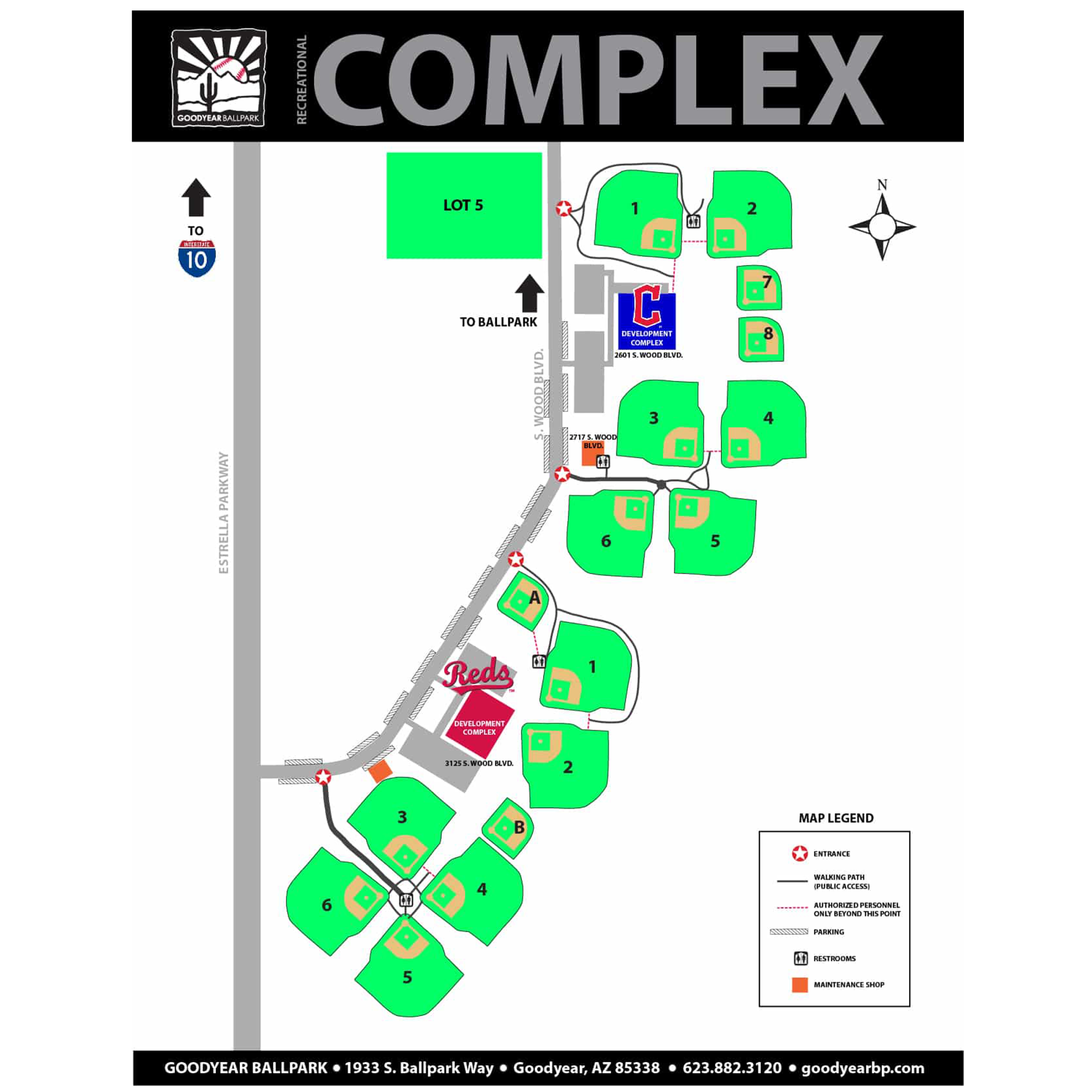 Loop 303, Verrado Area: I-10 East to Estrella Parkway (Exit 126). Turn south and follow Estrella Parkway to Lower Buckeye Rd. Take a left onto Lower Buckeye Rd. to S. Wood Blvd. (first stop sign). At S. Wood Blvd, turn right and the Development Complex will be 1/4 mile down on the east side of Wood Blvd.