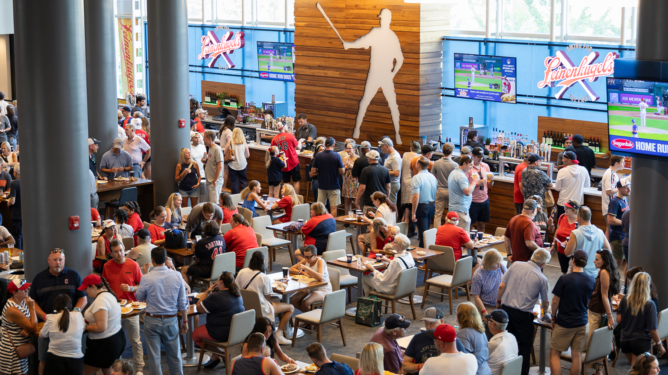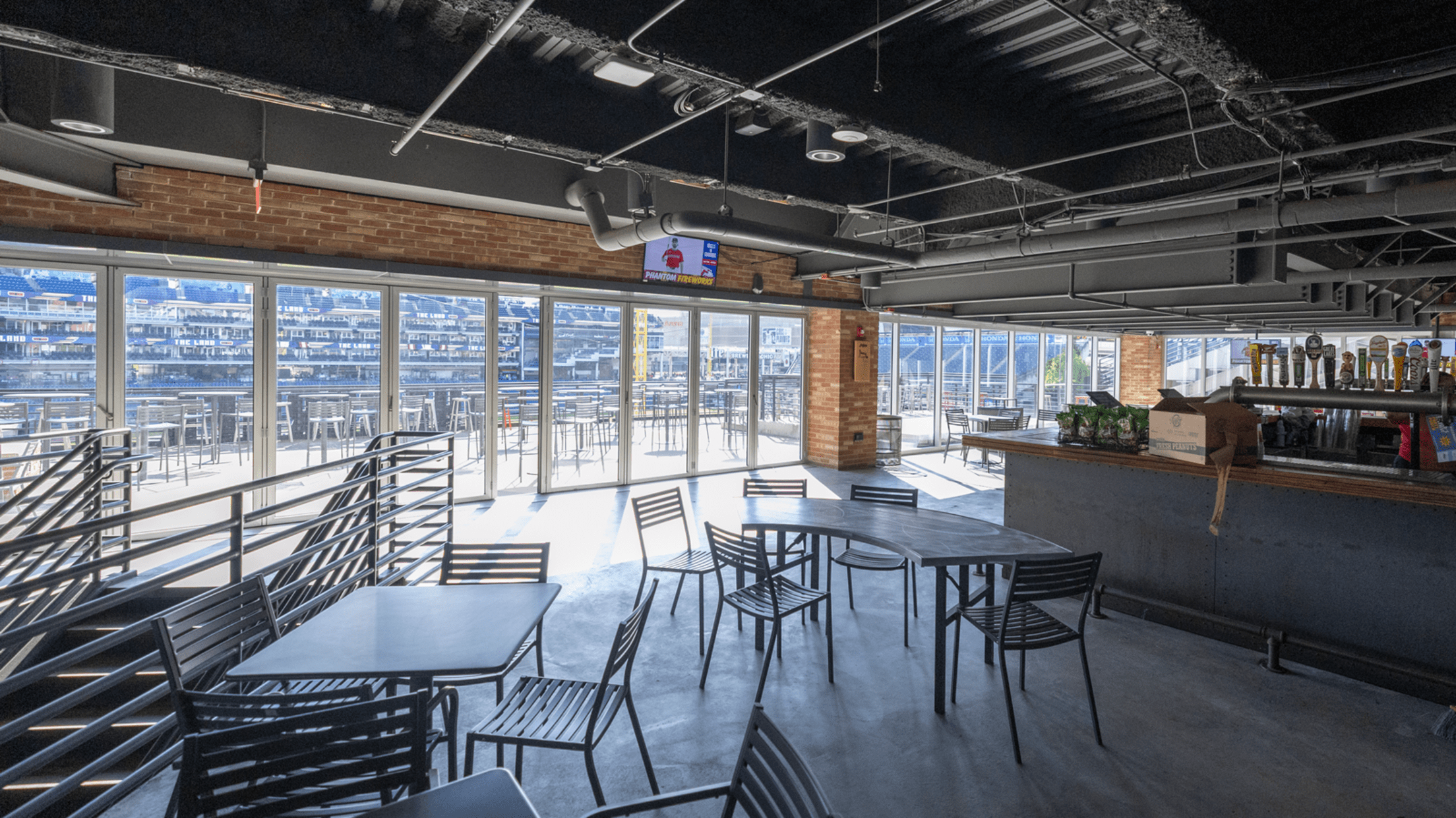 The Corner bar is located in the heart of the Right Field District. On the second level, groups are able to utilize a private area that stretches along the first-base line with high-top and picnic tables. It's home to a welcoming environment and provides a unique game experience for the entire duration of the game.
