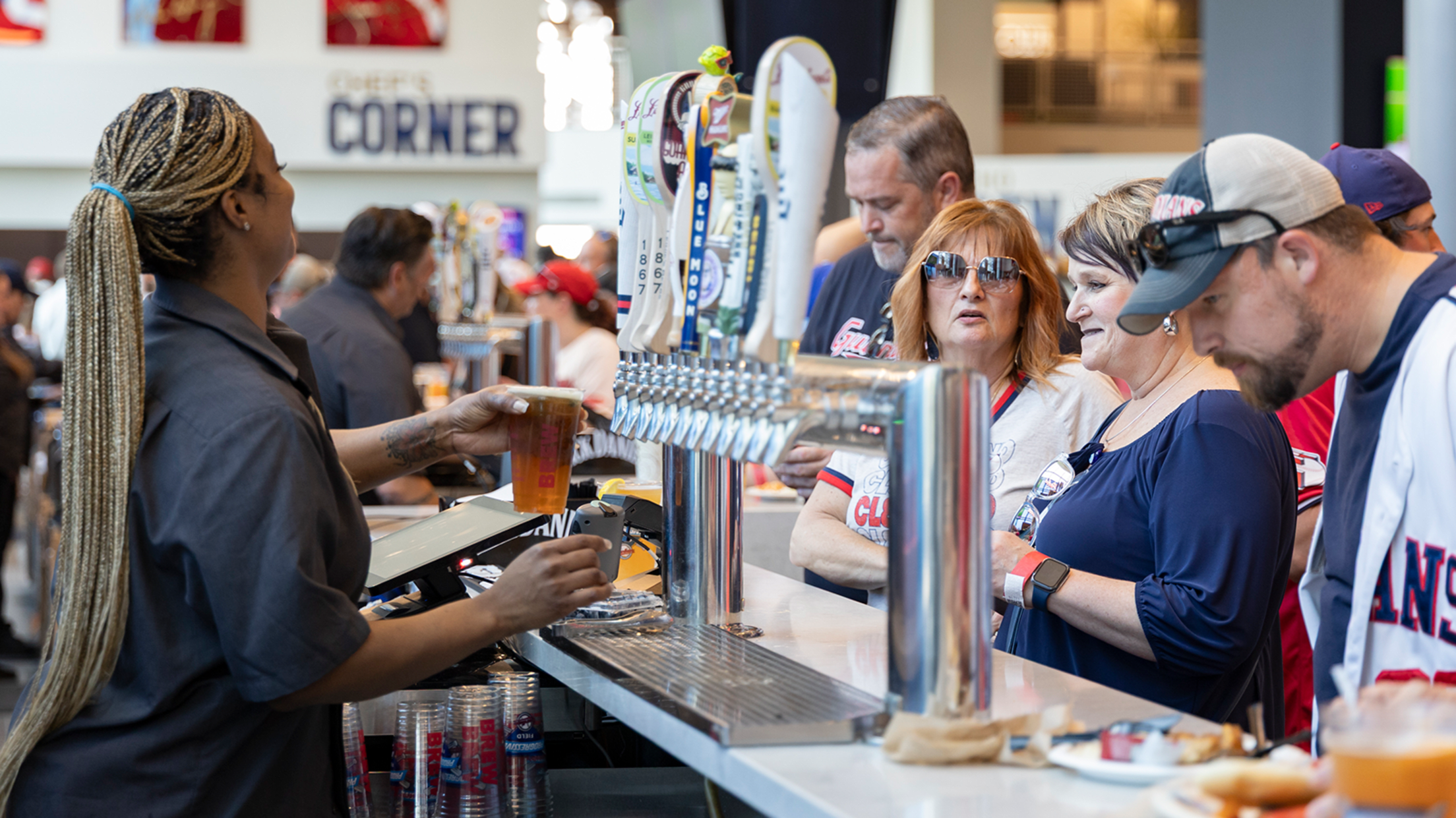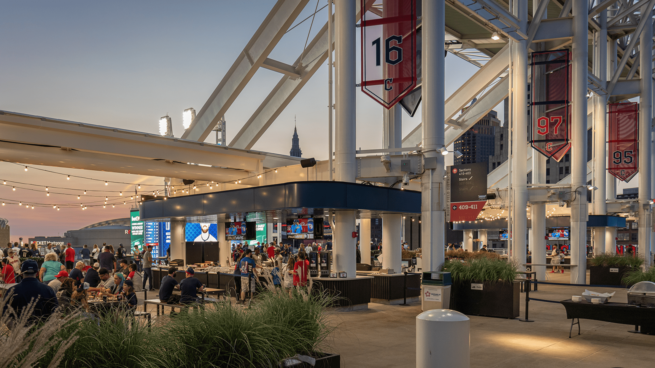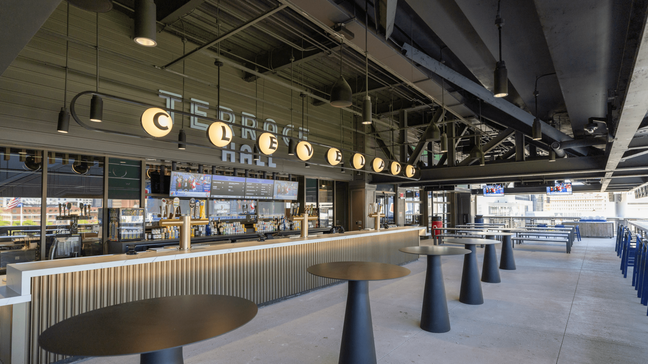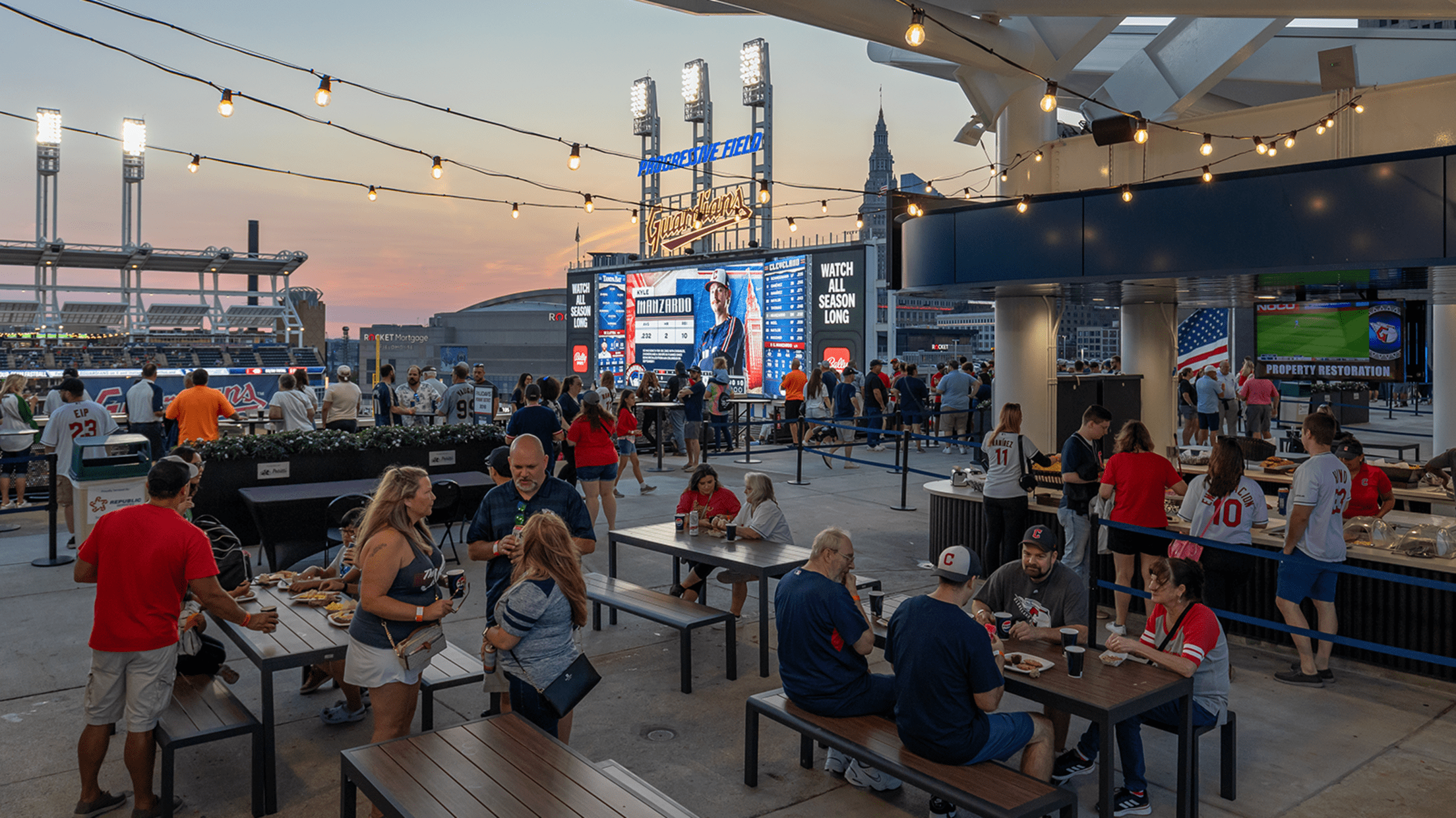 A welcoming, social beer-hall like bar with a distinctly Cleveland vibe featuring a wide selection of craft beer and an indoor/outdoor space to enjoy the sights of the ballpark. Space is available to groups Monday-Thursday games.