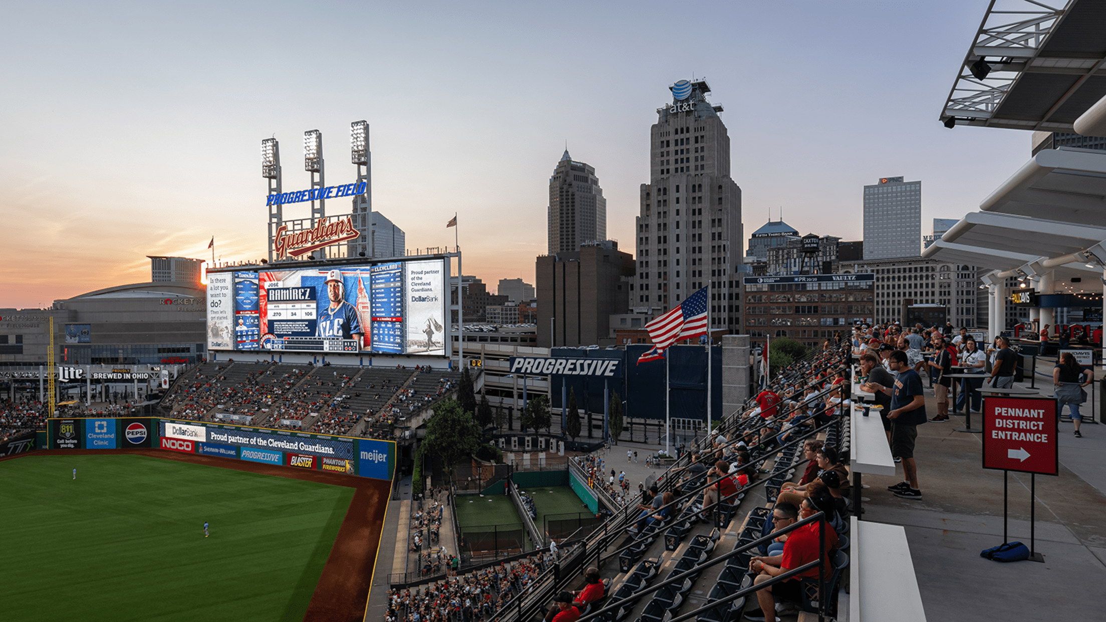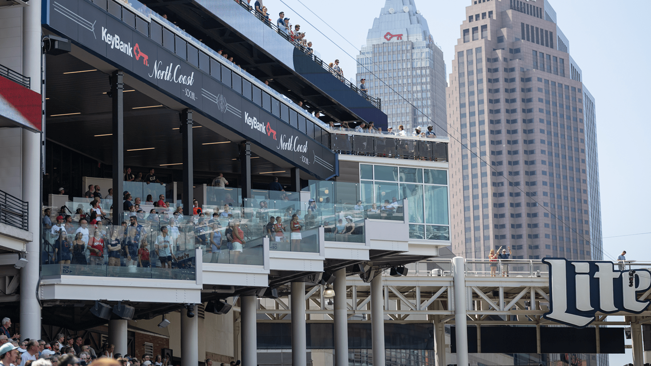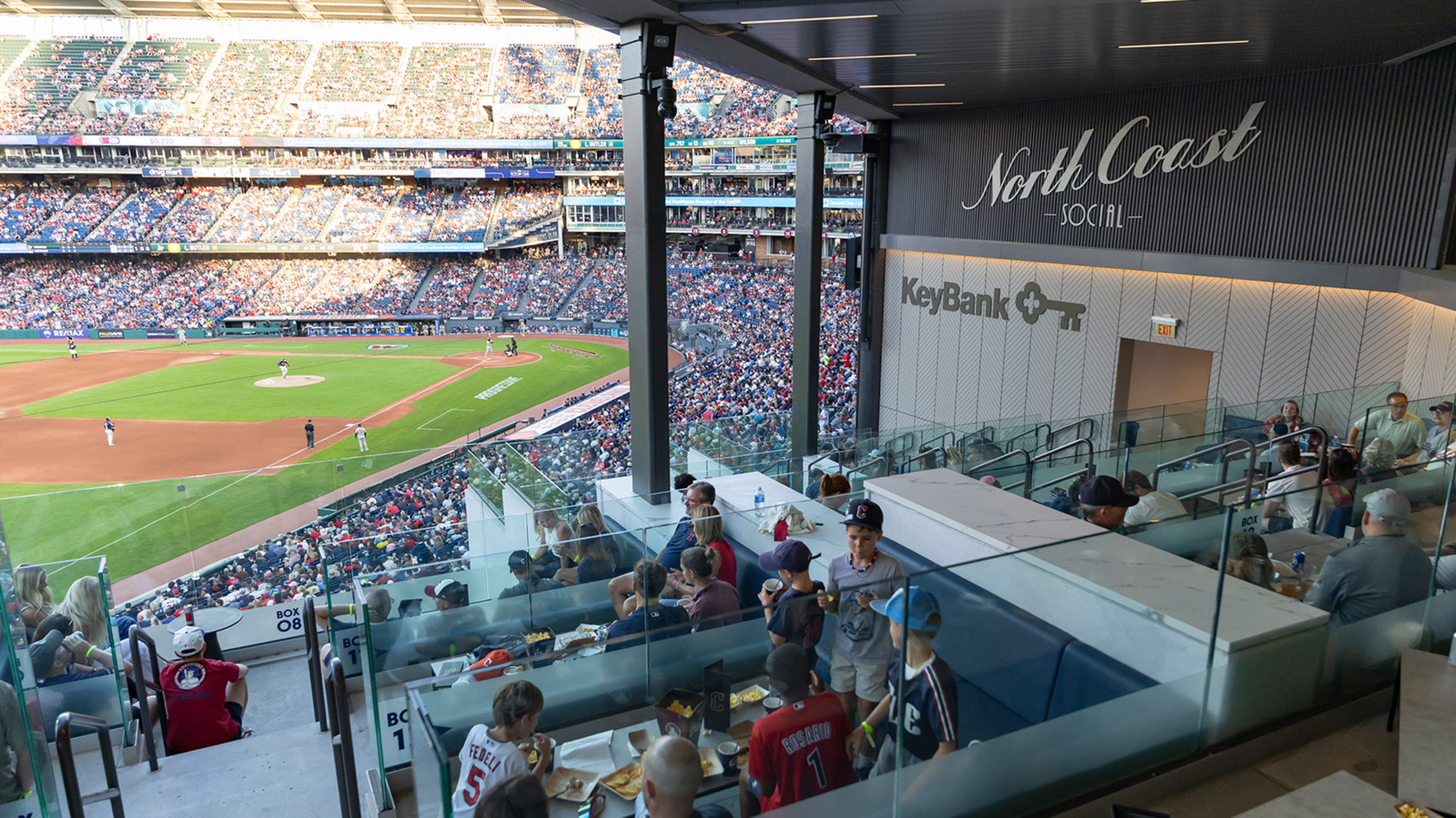 The Paul David Pennant District offers a unique experience offering a dedication group spaces with views of the ballpark and downtown Cleveland.