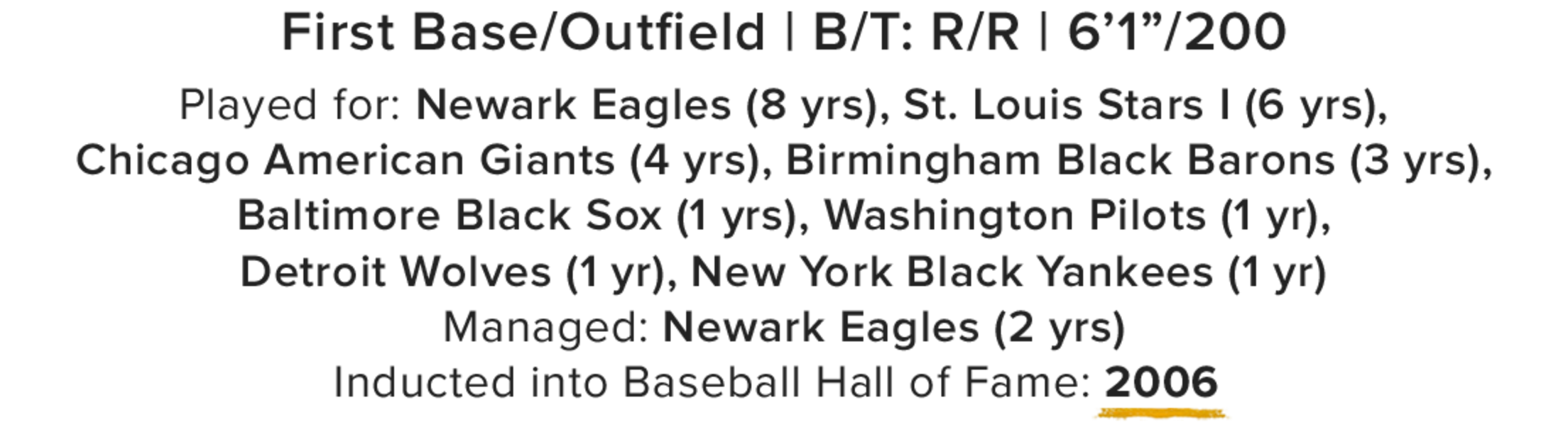 “We always wondered why Uncle George was never mentioned,” Merriett Burley, Suttles’ niece, said at the Hall of Fame ceremony in '06. “They always mentioned Satchel Paige and Josh Gibson and Cool Papa Bell, but they never mentioned Uncle George. We’re now saying he’s getting his just rewards.”