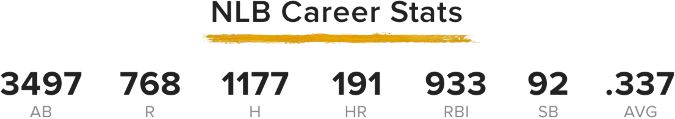 Records of Negro Leagues Baseball statistics are incomplete. The above was compiled using various sources including the Negro Leagues Database at seamheads.com after consultation with John Thorn, the Official Historian for MLB, and other Negro Leagues experts. In December 2020, MLB bestowed Major League status on seven professional Negro Leagues that operated from 1920-48. MLB and the Elias Sports Bureau are in the process of determining how this will affect official MLB records and statistics.