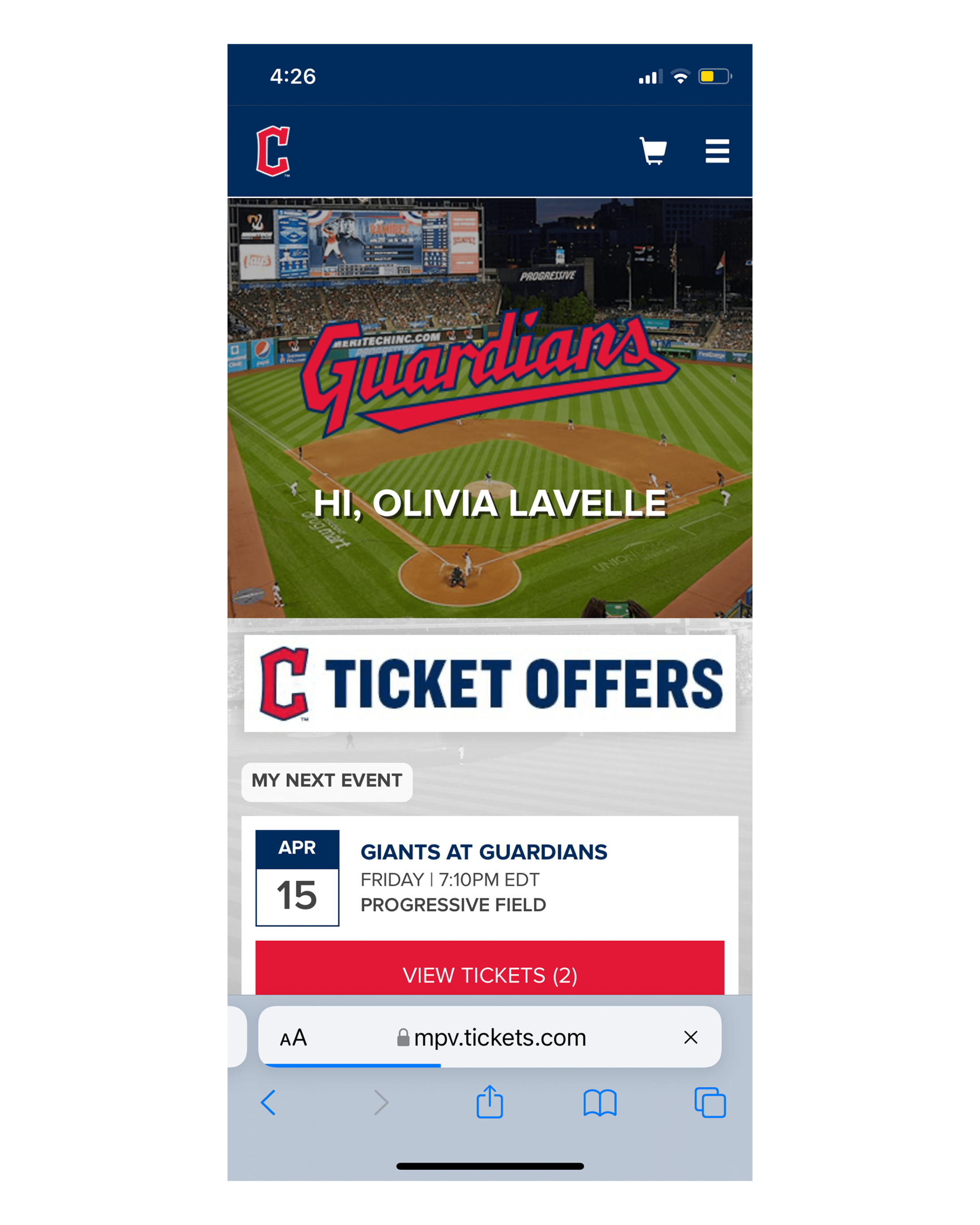 You can easily forward tickets to friends via the MLB Ballpark app up to two hours after the start of that day's game as long as the tickets have not already been scanned in for entry at Progressive Field. - Can I use Apple Wallet for my Guardians tickets?