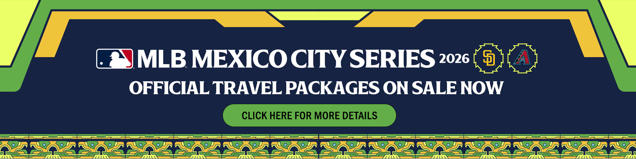 Tickets for the 2026 Mexico City Series will go on sale to the general public through Ticketmaster on Monday, January 19th. Further information, including a link to the general sale, will be available in the coming weeks. In the meantime, travel packages are currently on sale below.