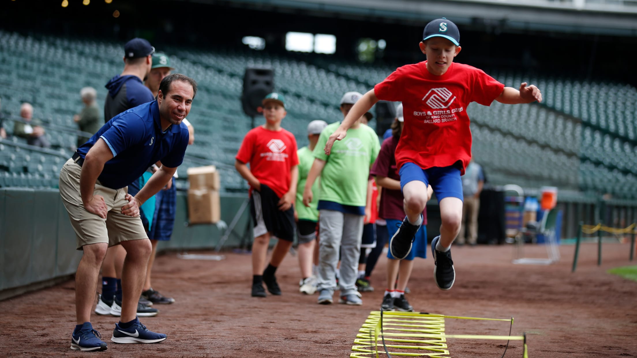In 2019, the Mariners hosted the 12th annual PLAY Campaign event at T-Mobile Park for kids from the Boys & Girls Clubs of King County. PLAY, Promoting a Lifetime of Activity for Youth, is a public awareness campaign developed by the Professional Baseball Athletic Trainers Society (PBATS) to combat child obesity. Mariners Athletic Trainers Rob Nodine and Matt Toth join Mariners players to encourage youth to be active, eat right, and sustain a healthy lifestyle.