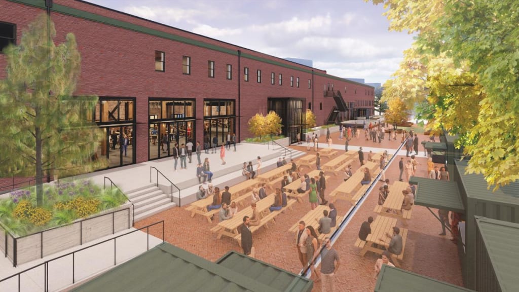 Immediate plans for the venue include a restaurant that will hold 250 people and a boutique brew pub, as well as flexible interior event space that could accommodate groups as large as 800 people. Interior demolition work is already underway.
