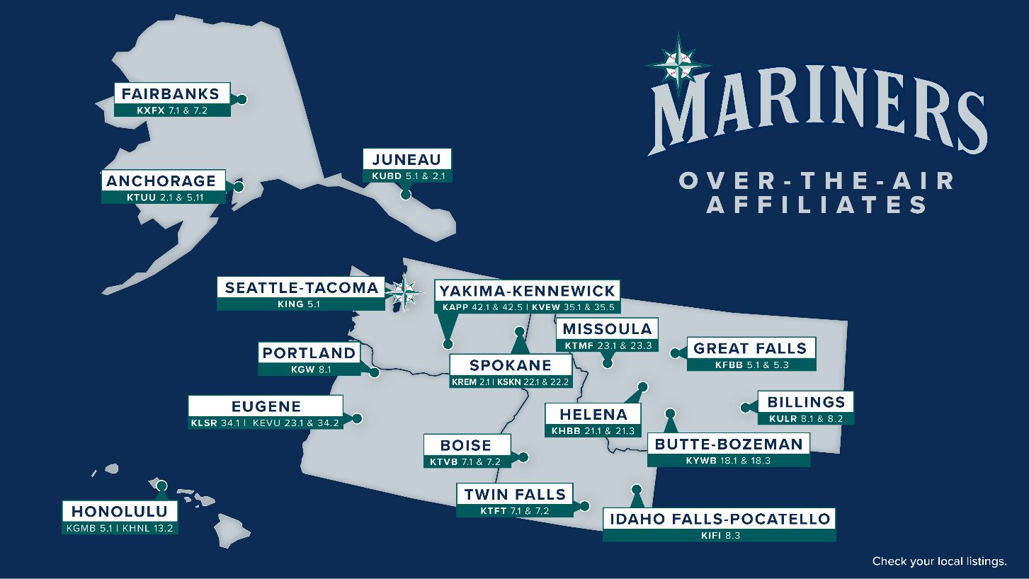 The Mariners and over-the-air partner KING 5 TV announced the full list of affiliates which will be carrying 10 Mariners games on broadcast TV beginning April 10. The Mariners and KING 5 announced a 10-game over-the-air (OTA) agreement on March 30.