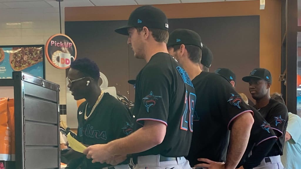 It started at 8 a.m. when left-hander Trevor Rogers received a text message while he was still in bed. Team leader Miguel Rojas, who rejoined the Marlins for the series opener after missing 18 games with a dislocated left index finger, decided a quick turnaround after Friday night's 10-2 victory over the Cubs called for some caffeine. So he checked his GPS searching for the closest coffee shop and found a Dunkin' down the block.