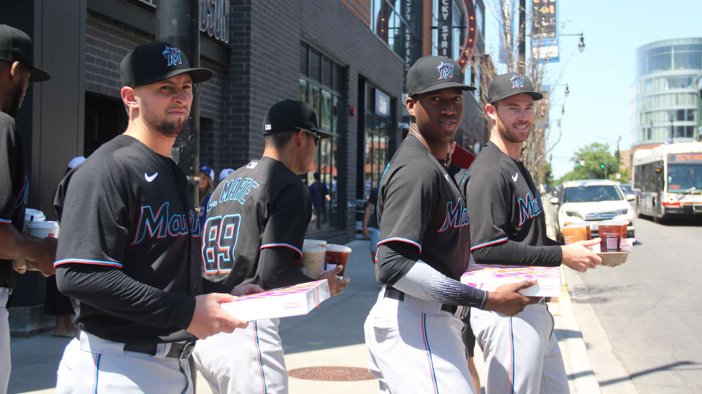 CHICAGO -- Fans walking the streets surrounding Wrigley Field were greeted with quite the sight prior to Saturday's Marlins-Cubs matinee: Miami rookies making a coffee run.