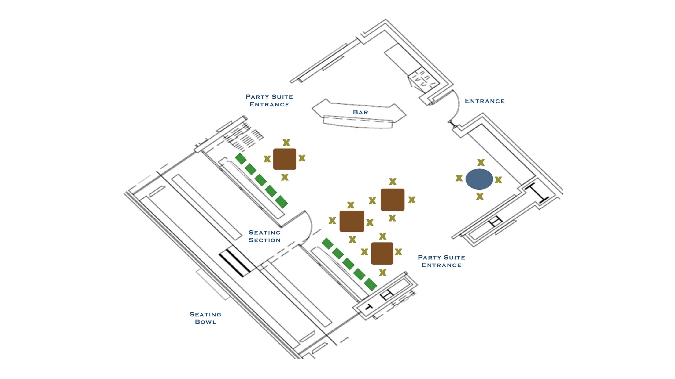 The Empire Suites are private, flexible spaces that can be transformed and customized to accommodate 10 to 50 individuals, depending on the suite. There are 39 suites, with an additional five Party Suites, and each features flat-screen televisions, comfortable lounge furniture and a terrace with seats. These suites are not sold as standalone spaces, but rather work as ideal add-ons to other event spaces.