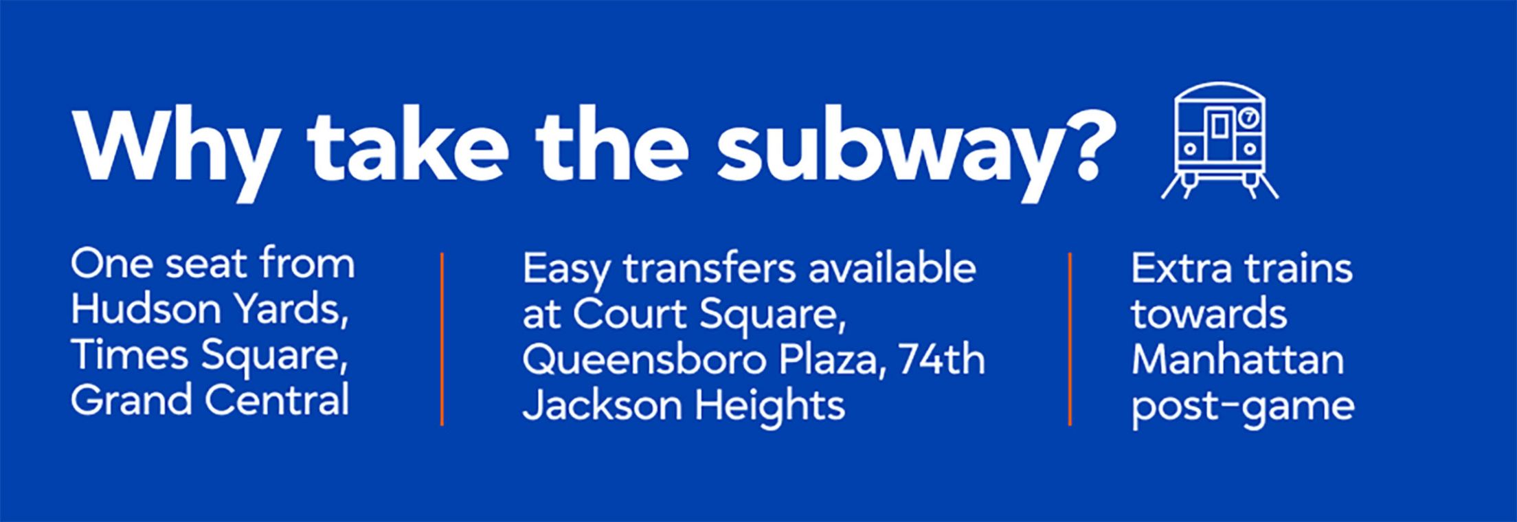 The Mets are working closely with the MTA to ensure frequent service on the 7 Train to Mets–Willets Point Station on game days, with extra and express trains as often as possible.