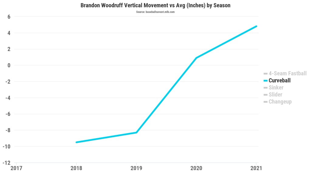 Woodruff has slowly worked a curveball into his repertoire since 2018, and now it's finally paying off as a major weapon for the Brewers ace in his best season yet.