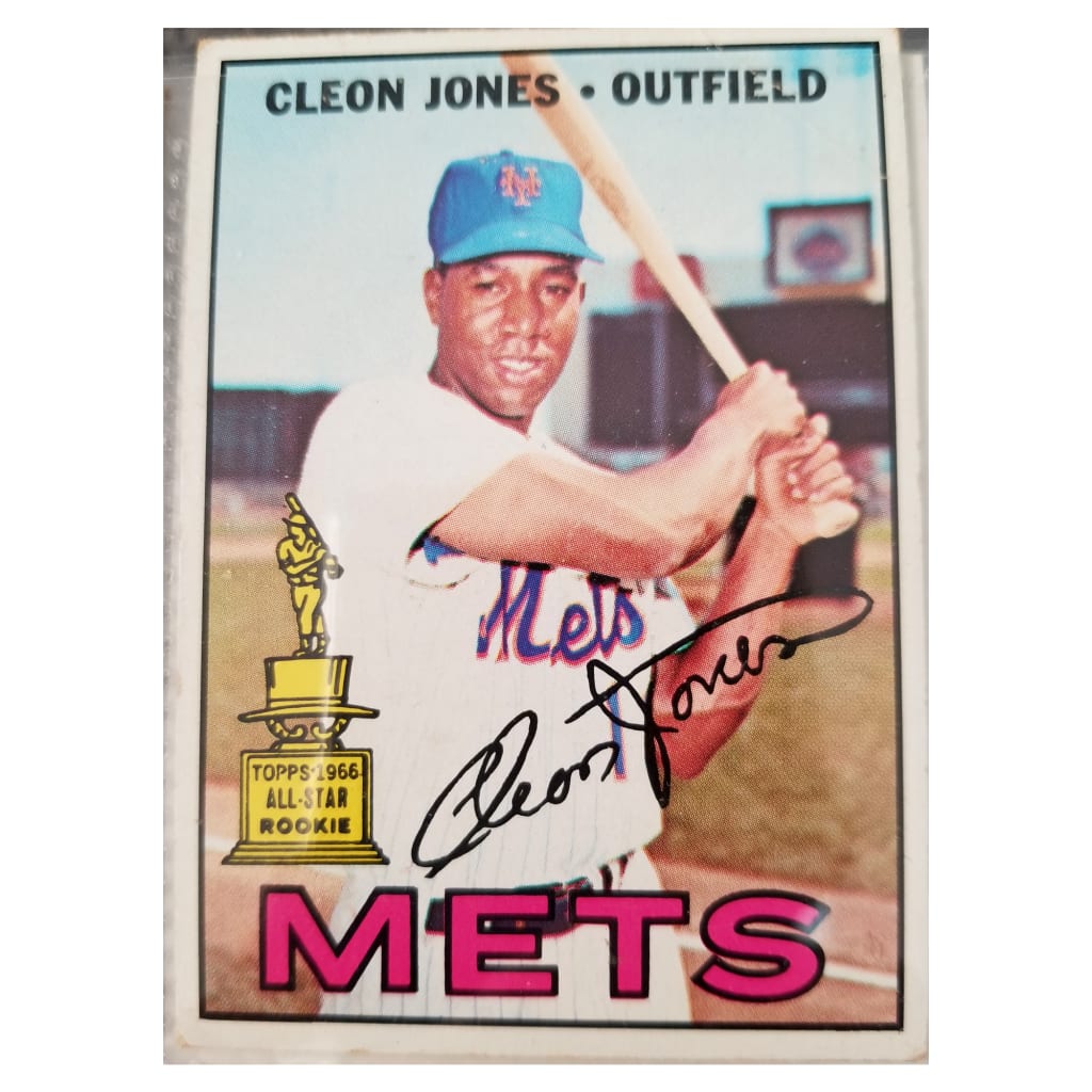 This card marks the beginning of Mets fandom for Andrew Rosenthal, who submitted it: "The year 1967 was when I declared myself a Mets fan and my mom gave me my first baseball cards. And Cleon Jones caught the last out of the 1969 World Series."