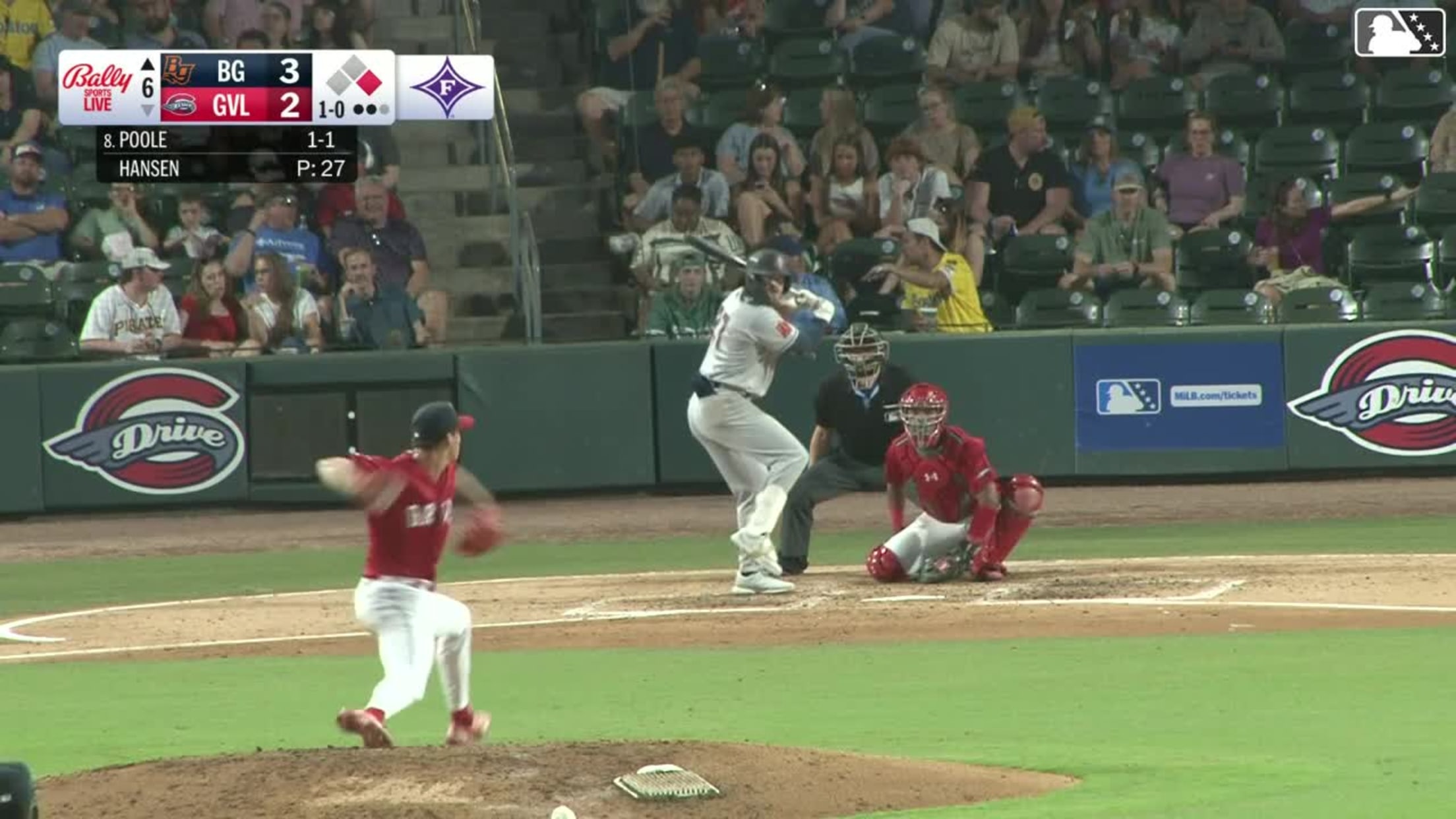 Tom Poole homers (1) on a fly ball to center field. Angel Mateo scores.