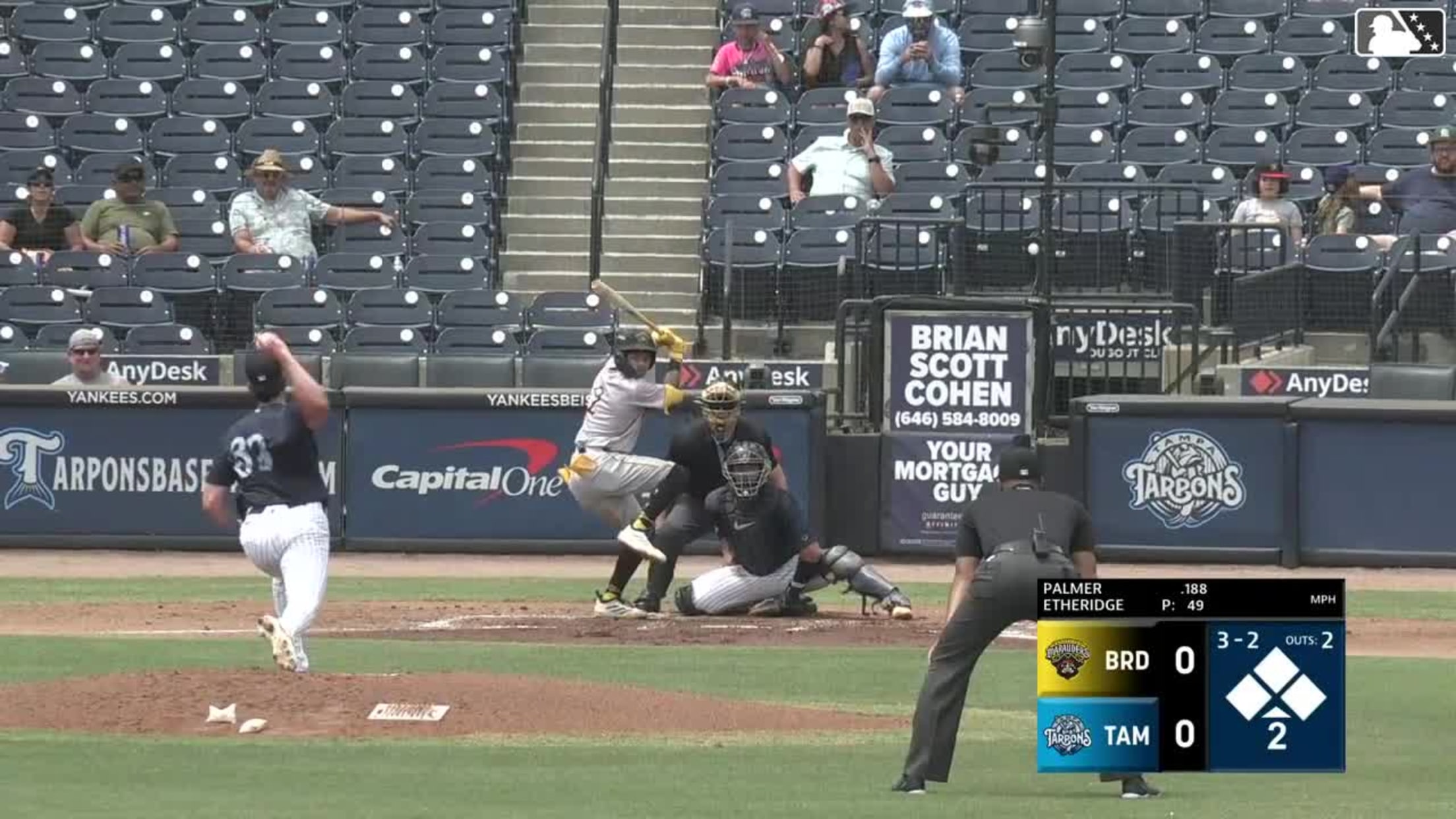 Edward Florentino singles on a ground ball to right fielder JoJo Jackson, deflected by first baseman Austin Green. Dylan Palmer scores.