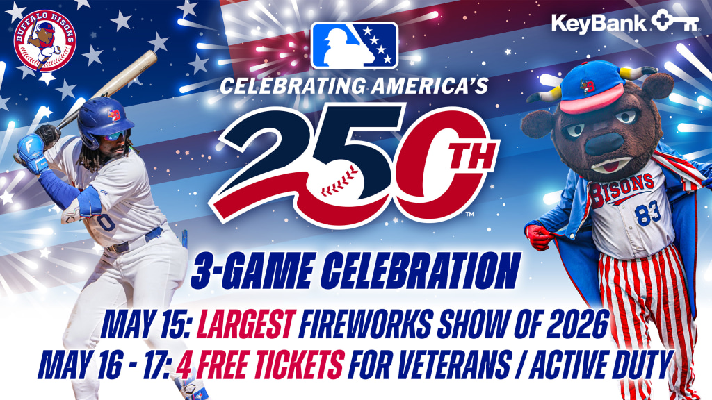 There’s no better place to hold a celebration of America’s milestone birthday than at the ballpark, and the Buffalo Bisons are thrilled to announce they’ve partnered with KeyBank for their “America’s 250th Celebration Weekend, May 15-17 at Sahlen Field.