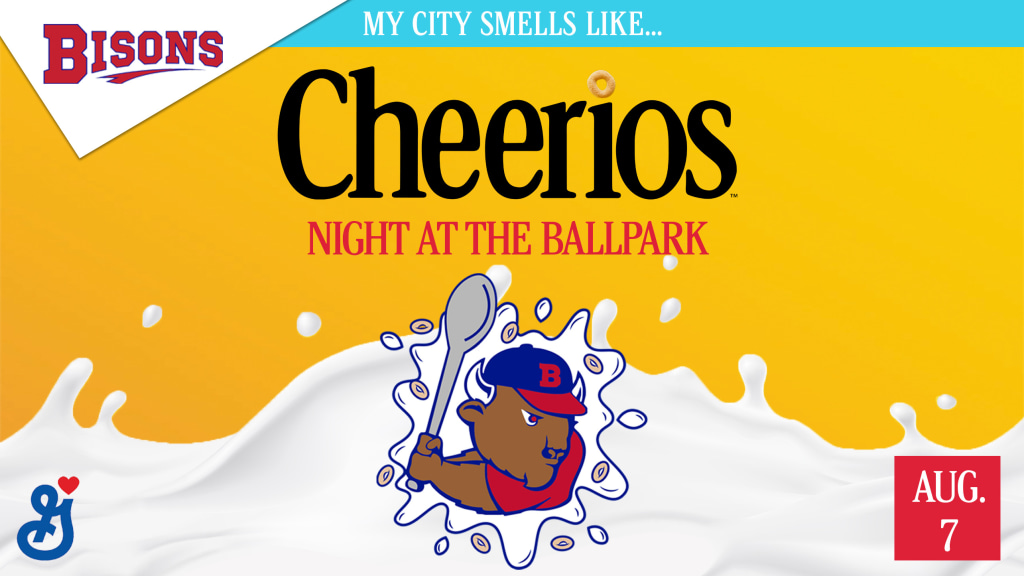 The Bisons are thrilled to announce that they have partnered with Cheerios and General Mills Buffalo for the all new My City Smells Like Cheerios™ Night at the Ballpark, Friday, August 7, against the Norfolk Tides (6:35 p.m.). A promotion that celebrates the great employees at General Mills’ Buffalo and combines two of downtown Buffalo’s favorite characteristics will include Cereal-Themed Caps & Jerseys, and not one, but two great giveaways: Cereal Bowls and full-boxes of Cheerios™.