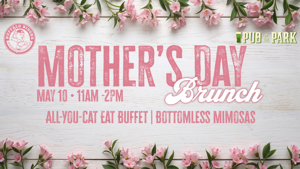 While the Bisons are on the road this year for Mom's big day, we're still celebrating at the ballpark. The Pub at the Park will be open from 11 am to 2 pm on May 10 for a great meal and a great view for all. The All-You-Can-Eat Brunch Buffet will include a large dessert station, premium carved meats and an expansive offering of brunch food. Cost is just $29.95 for adults and $24.95 for kids 12 years old younger (kids 5 and under are FREE!).