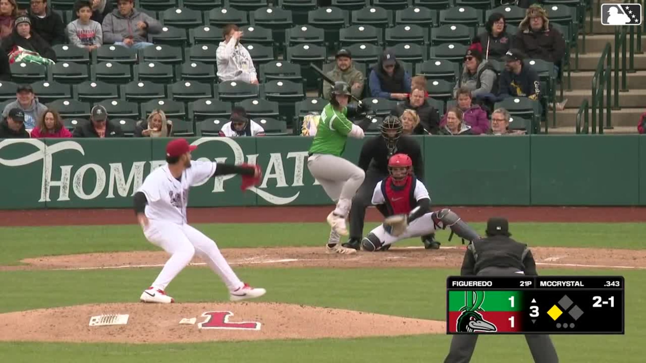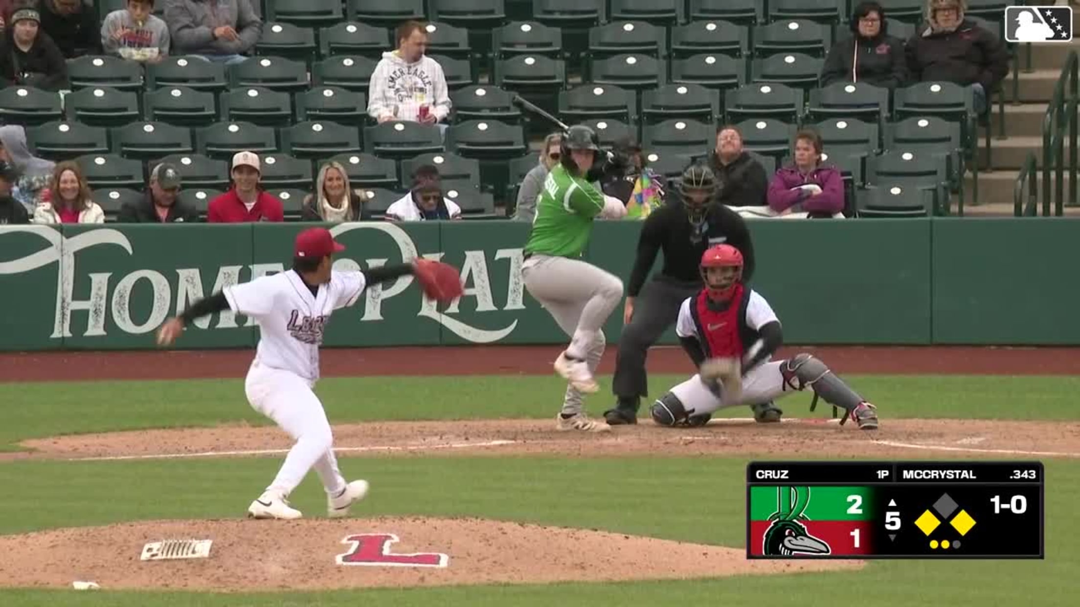 Ryan McCrystal singles on a line drive to right fielder Mike Sirota. Kien Vu scores.
