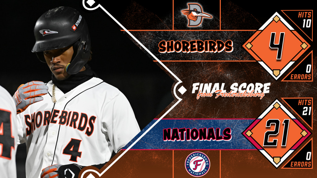 FREDERICKSBURG, VA: The Delmarva Shorebirds (3-7) were defeated by the Fredericksburg Nationals (6-4) in Tuesday's series opener, 21-4.
