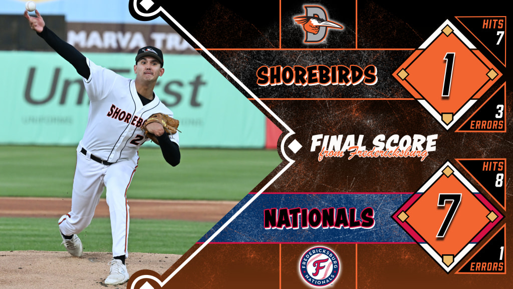 FREDERICKSBURG, VA: The Delmarva Shorebirds (4-10) suffered their third consecutive loss to the Fredericksburg Nationals (9-5) on Saturday night, falling 7-1.
