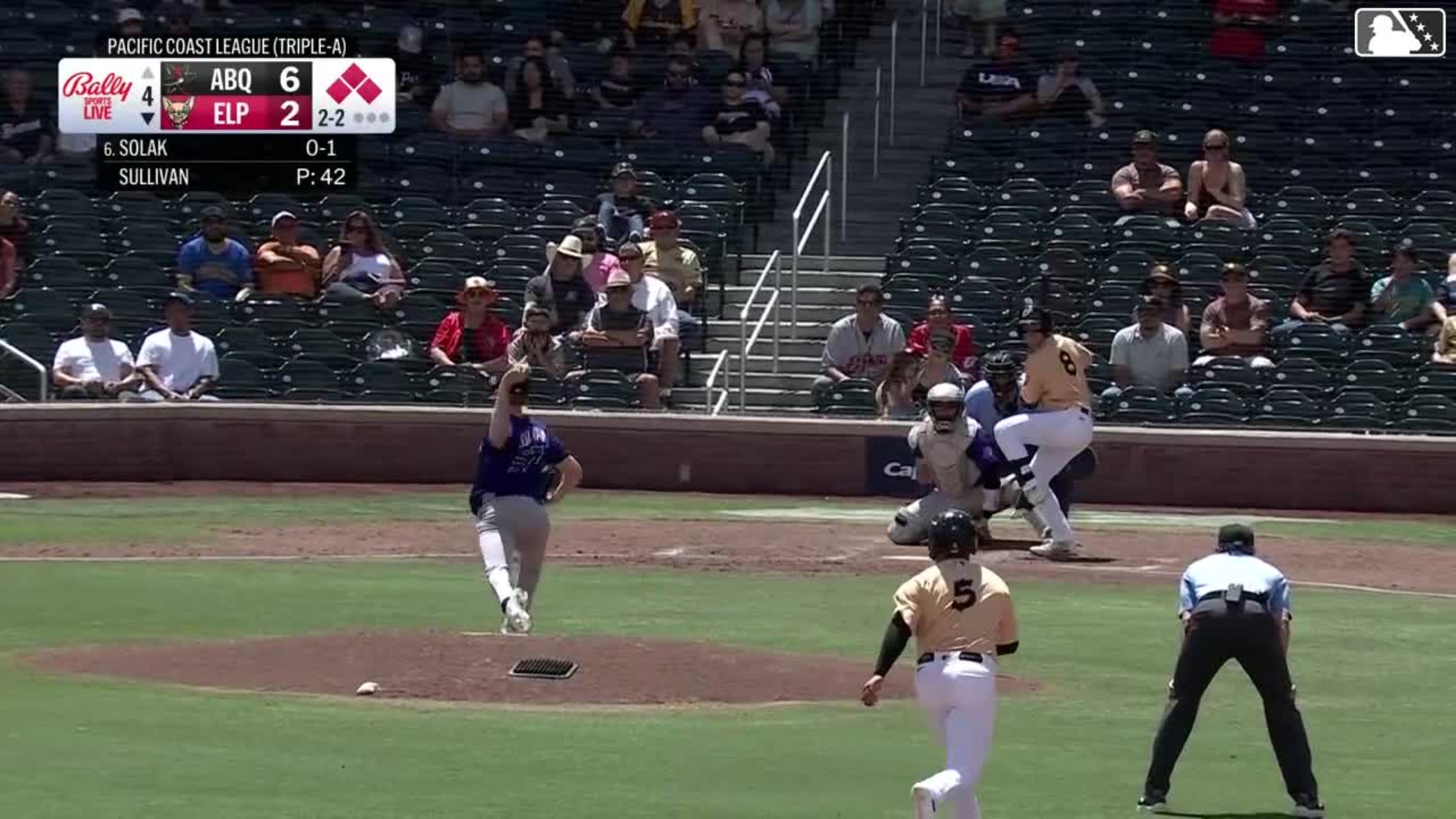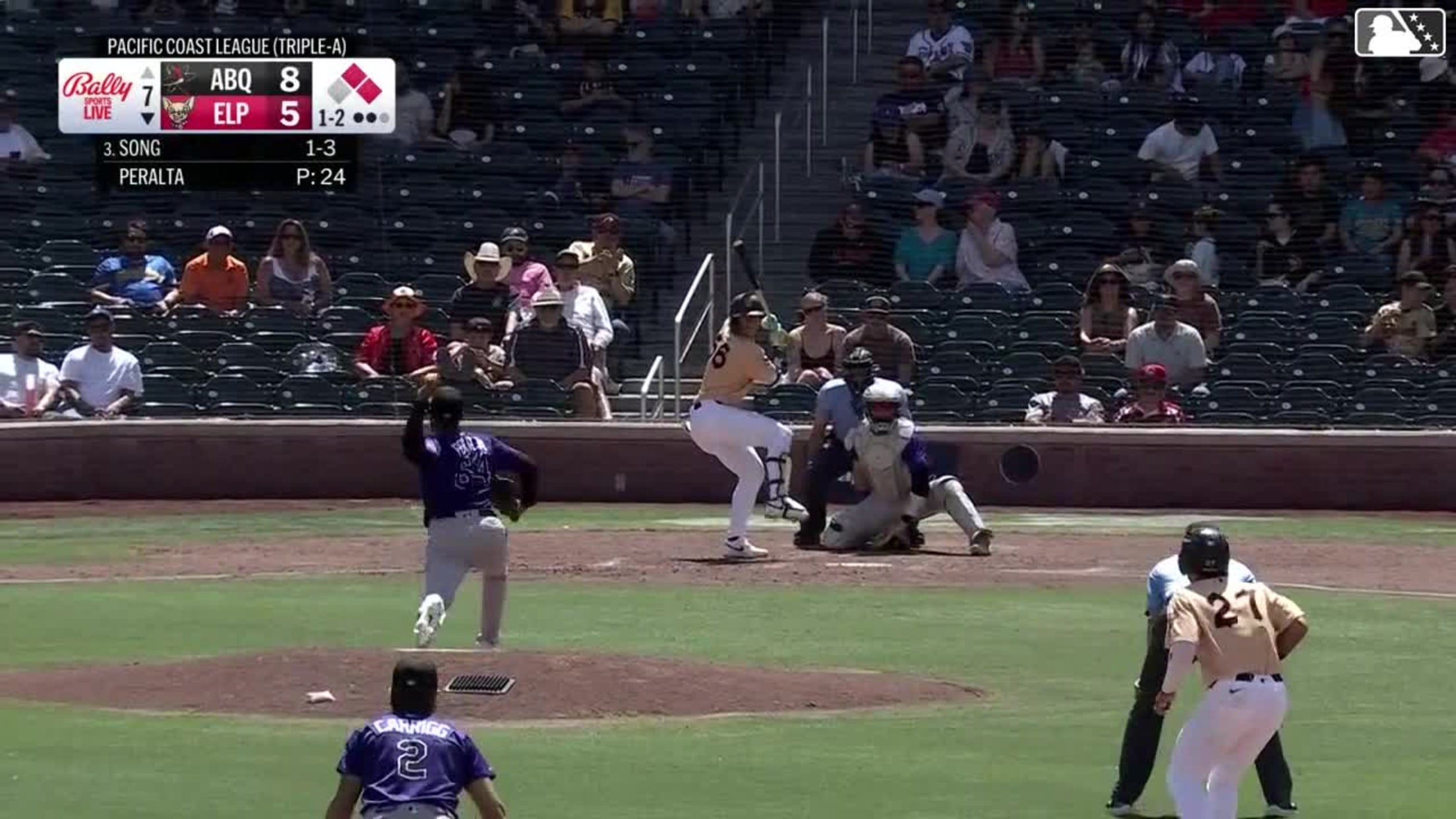 Sung-Mun Song singles on a line drive to left fielder Ryan Ritter. Carlos Rodríguez scores. Jase Bowen to 2nd.