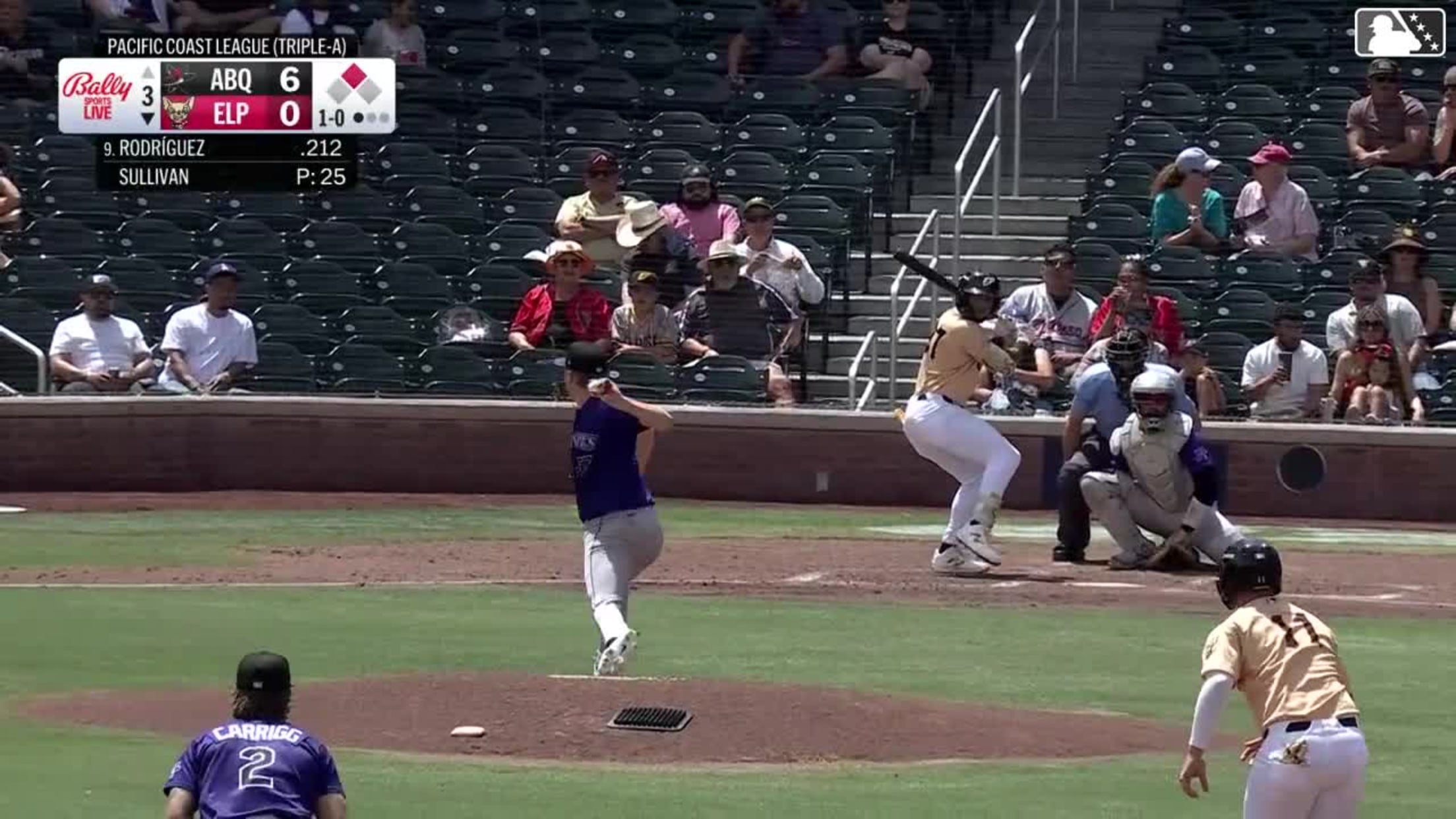 Carlos Rodríguez singles on a ground ball to center fielder Zac Veen. Jose Miranda scores.