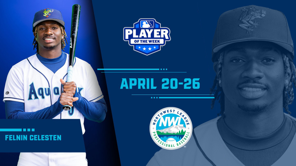 April 27, 2026 — EVERETT, WA: Shortstop Felnin Celesten has been named the Northwest League Player of the Week. In five games against the Spokane Indians, he hit .471 (11-for-17), a .571 on-base percentage, a slugging percentage of .647, scored five runs, and flashed standout defense in the field.
