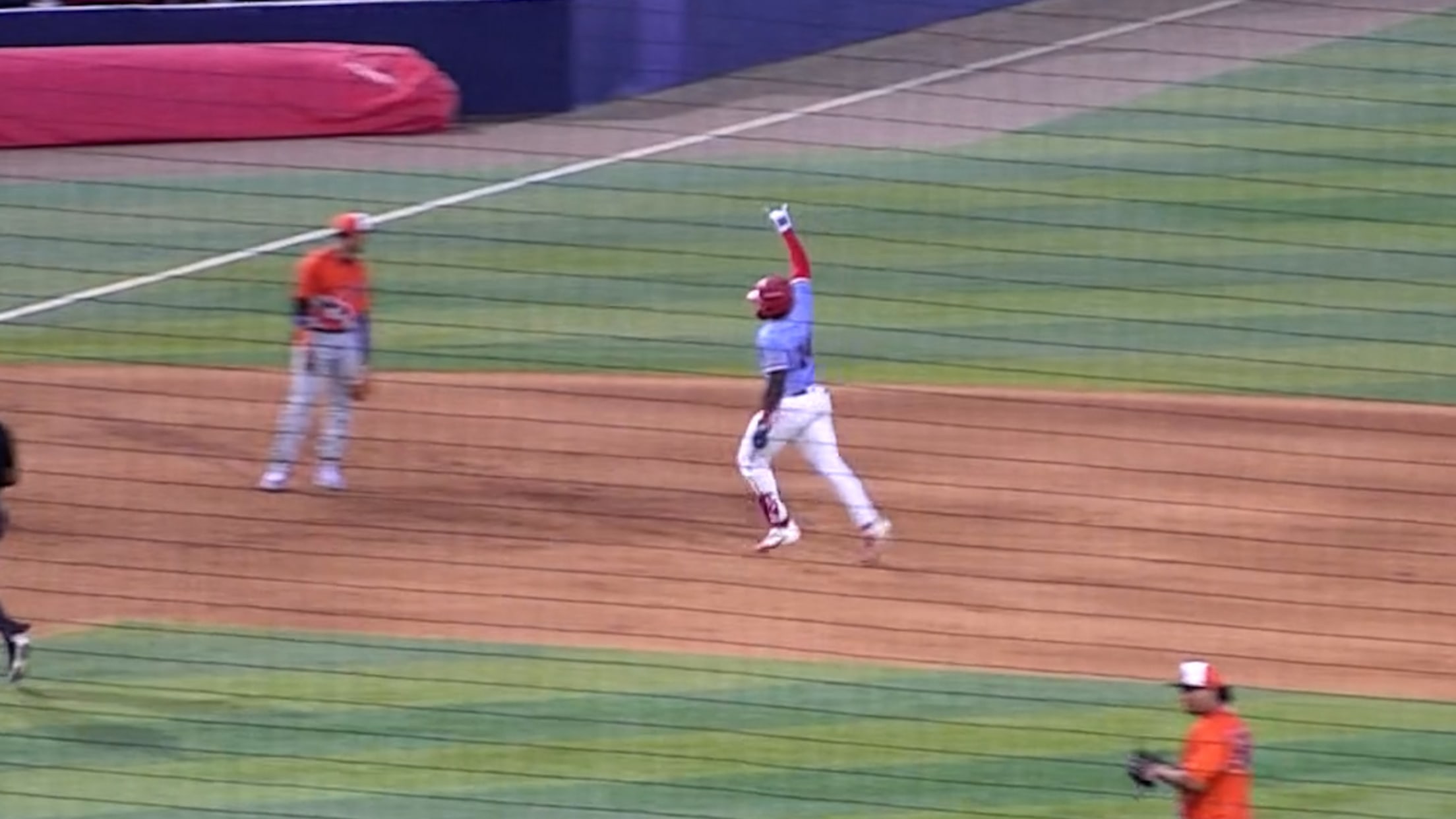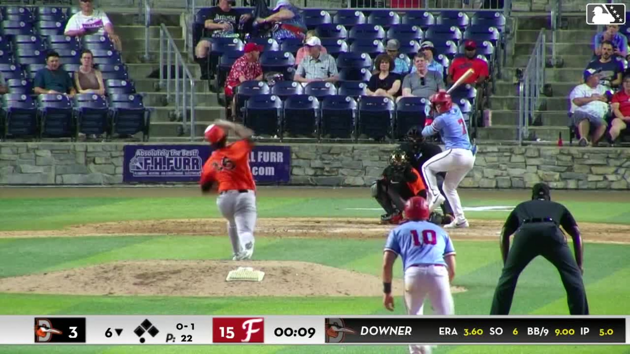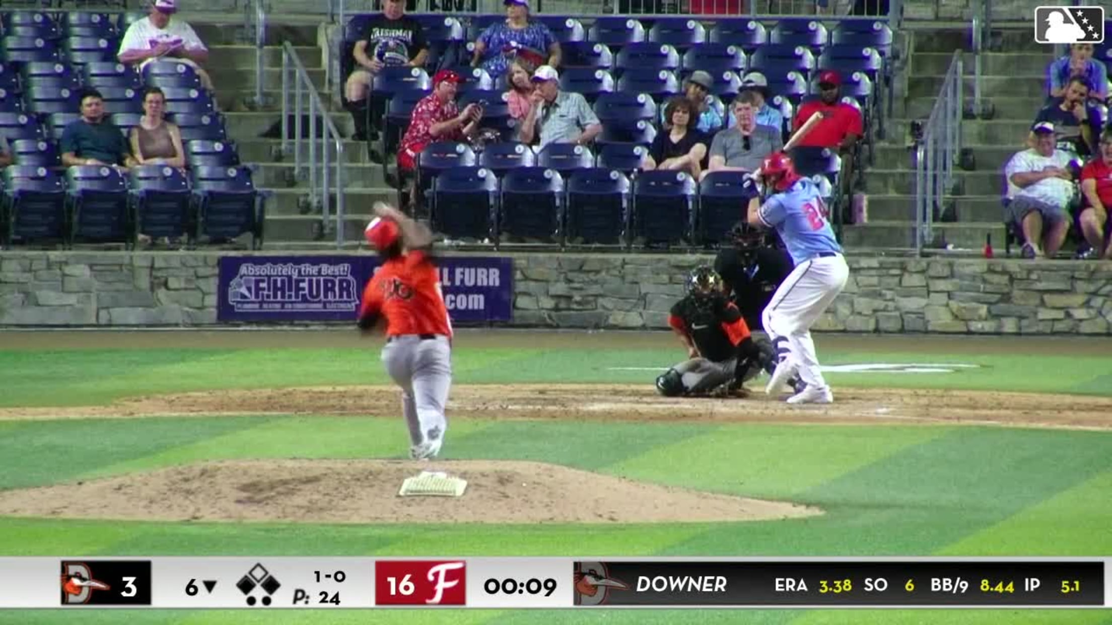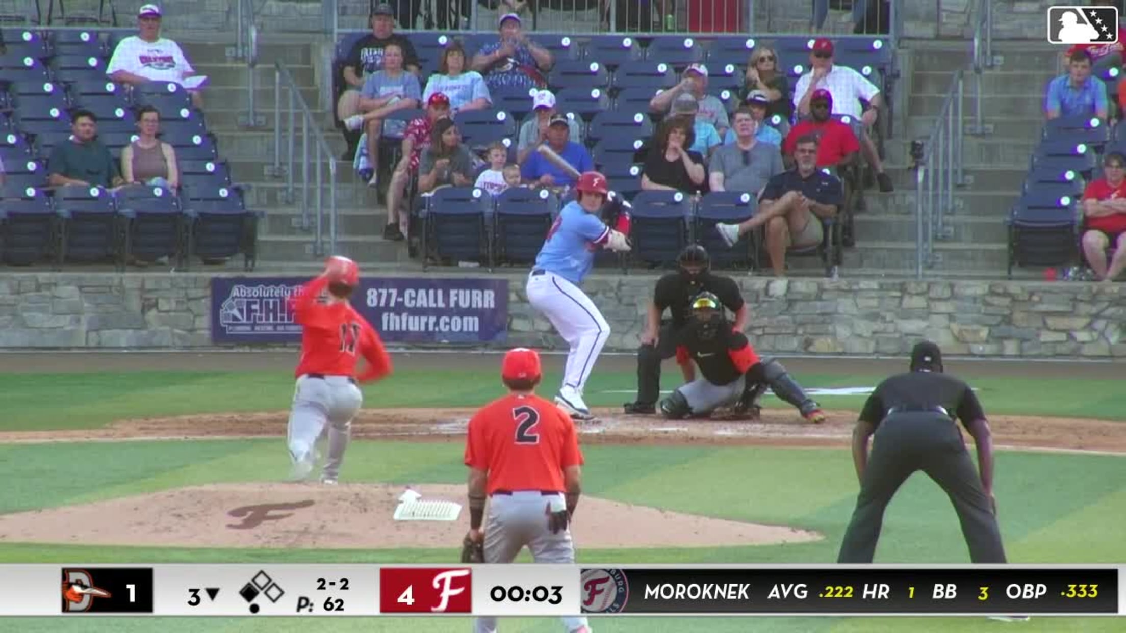 Jack Moroknek singles on a ground ball to center fielder Stiven Martinez. Juan Cruz scores.