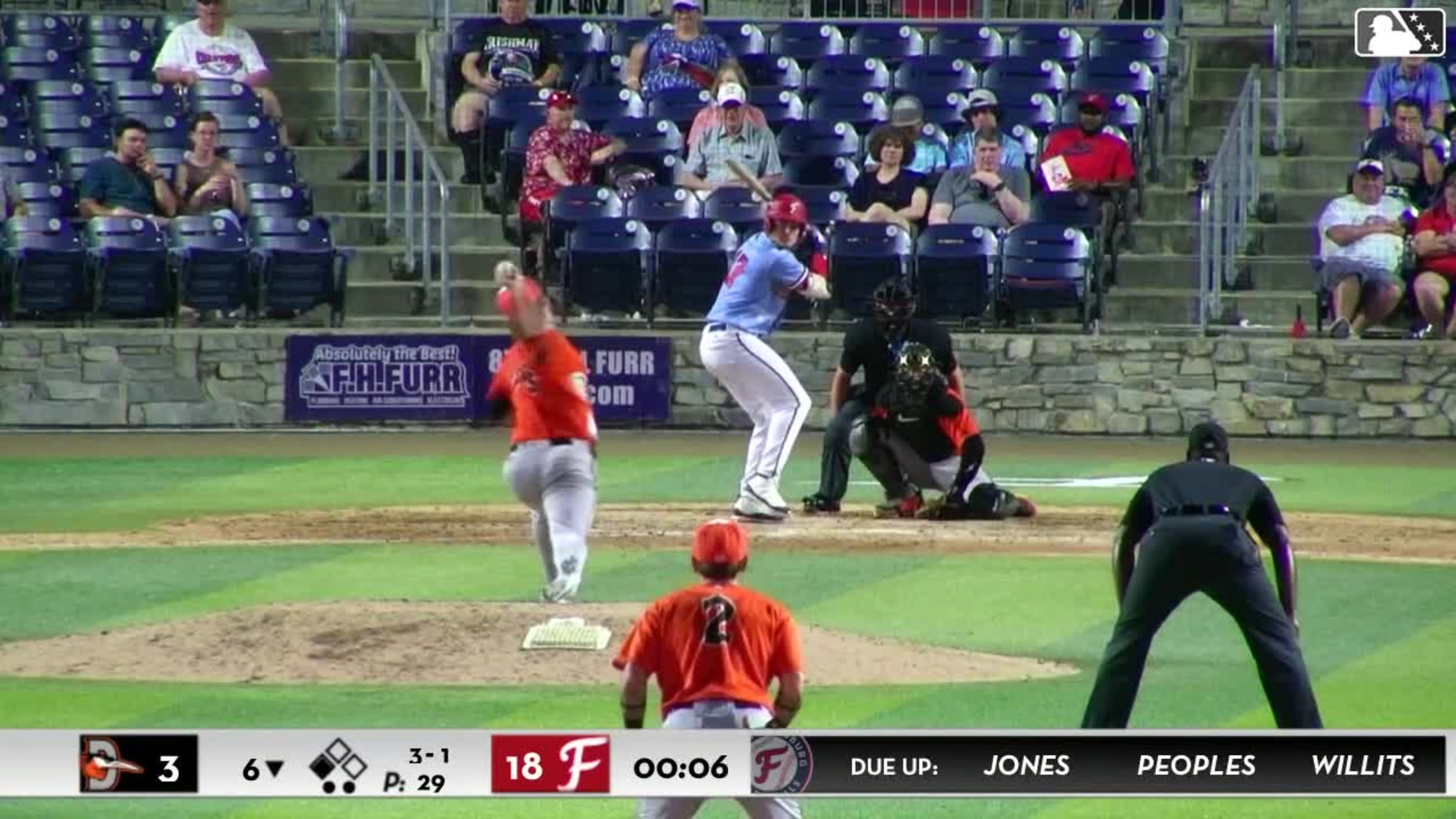 Ronny Cruz doubles (4) on a sharp line drive to left fielder Braylon Whitaker. Nick Peoples scores. Eli Willits scores. Luke Dickerson scores.