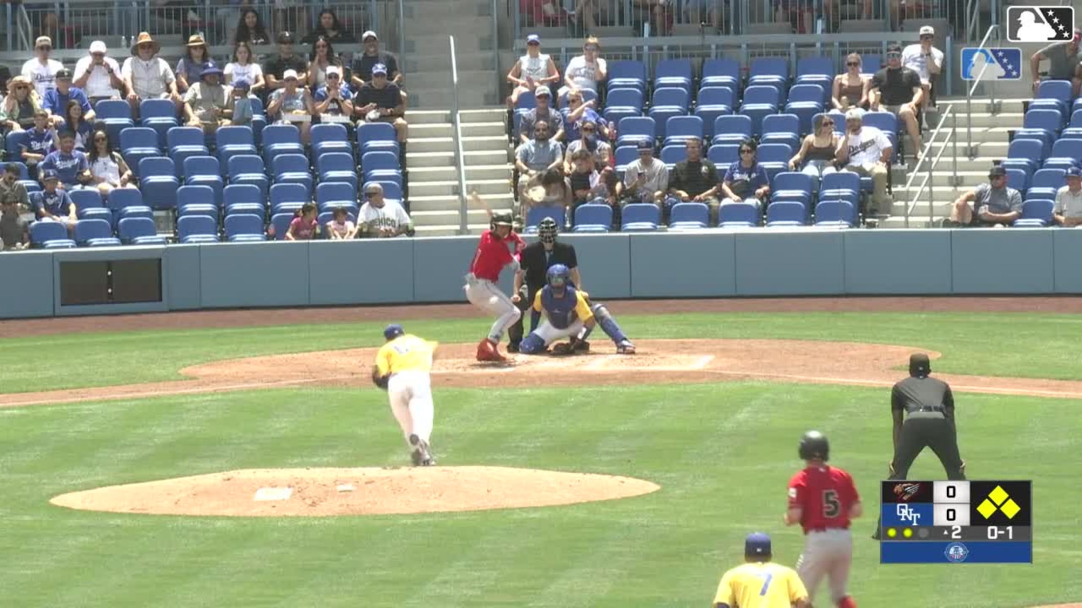 Derek Bernard singles on a sharp line drive to center fielder Jaron Elkins. Cameron Nelson scores. Roldy Brito to 2nd.