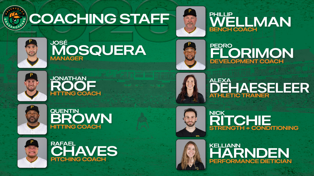 A mix of returning and new coaching staff will join Mosquera in 2026. Returning to Greensboro are Hitting Coach Jonathan Roof, Bench Coach Phillip Wellman, Strength and Conditioning Coach Nick Ritchie, and Performance Dietician Kelliann Harnden. New additions to the staff include Hitting Coach Quentin Brown, Pitching Coach Rafael Chaves, Development Coach Pedro Florimon, and Athletic Training Coordinator Alexa DeHaeseleer.