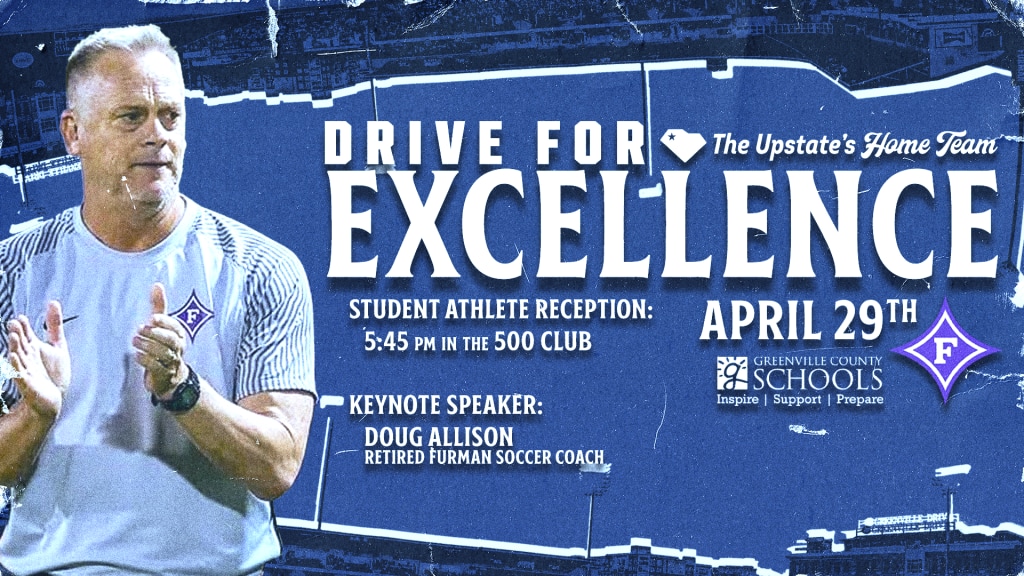 The evening will feature a special Drive for Excellence pregame reception and discussion in the 500 Club beginning at 5:45 PM, highlighted by keynote speaker Doug Allison, former Furman Men’s Soccer coach. Join us as we recognize the hard work, discipline, and academic success of student-athletes from across Greenville County before the Drive take the field.