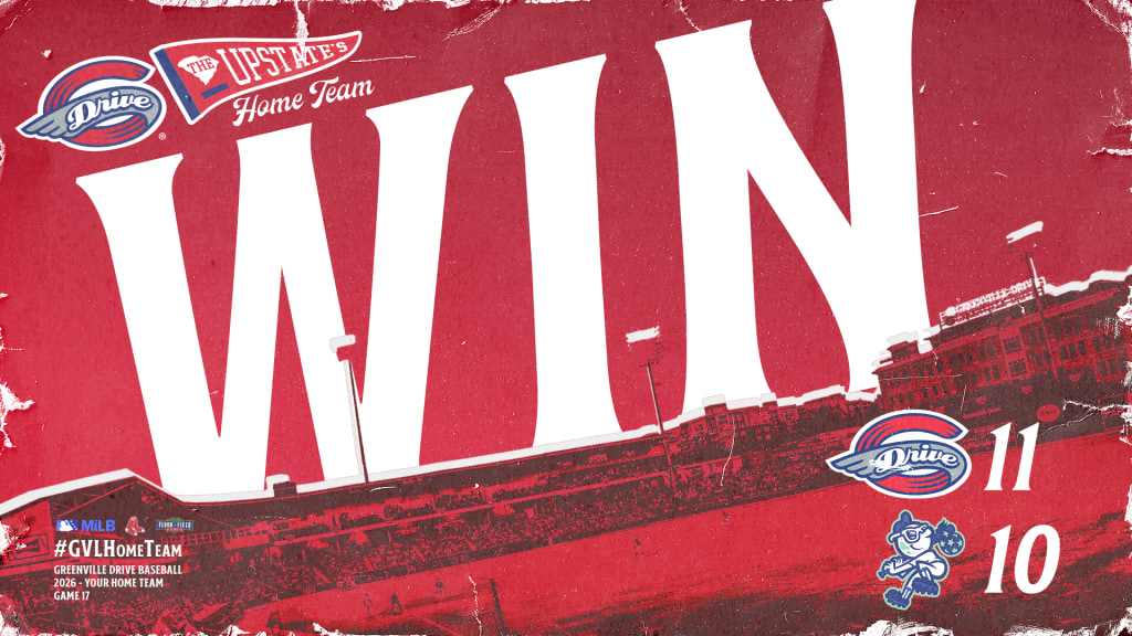 ASHEVILLE, N.C. - The Greenville Drive erased a five-run deficit with a stunning two-out rally in the ninth, then survived the 10th inning to beat the Asheville Tourists 11-10 on Wednesday night at HomeTrust Park, stretching their winning streak to five games.