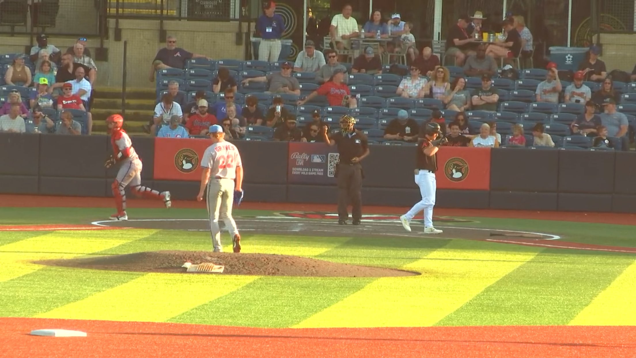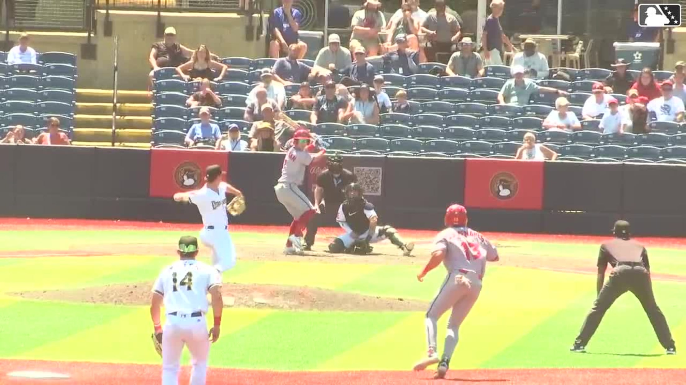 Kodey Shojinaga doubles (2) on a ground ball to left fielder Owen Carey. Brady Day scores.