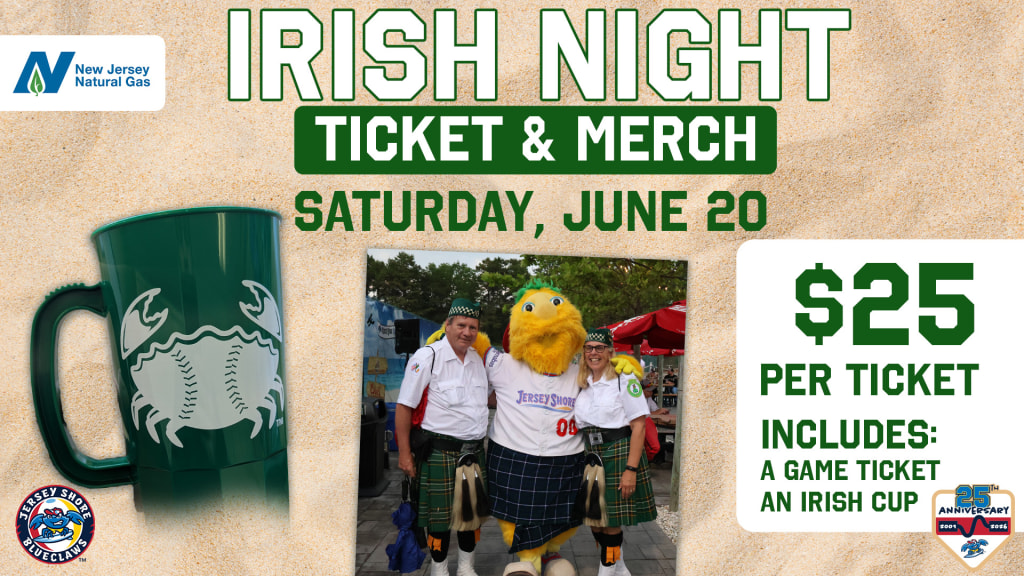JERSEY SHORE, NJ - Happy St. Patrick's Day from the BlueClaws! We'll celebrate in full with Irish Heritage Night on June 20th and we have a special Ticket & Mug Package available.