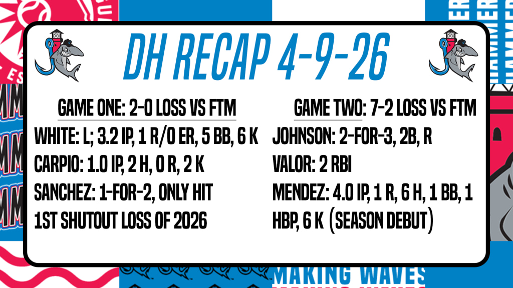 JUPITER, FL – The Jupiter Hammerheads (2-4) dropped both games of their first doubleheader of the 2026 season on Thursday night at Roger Dean Chevrolet Stadium. Jupiter suffered their first shutout loss of the season in game one by a 2-0 final score. Fort Myers exploded late in game two to defeat Jupiter 7-2 to complete the doubleheader sweep.