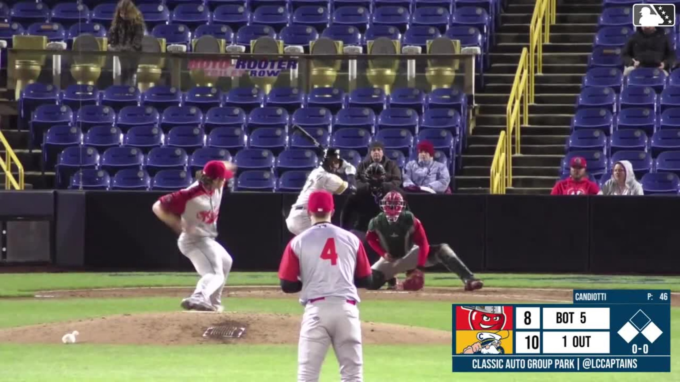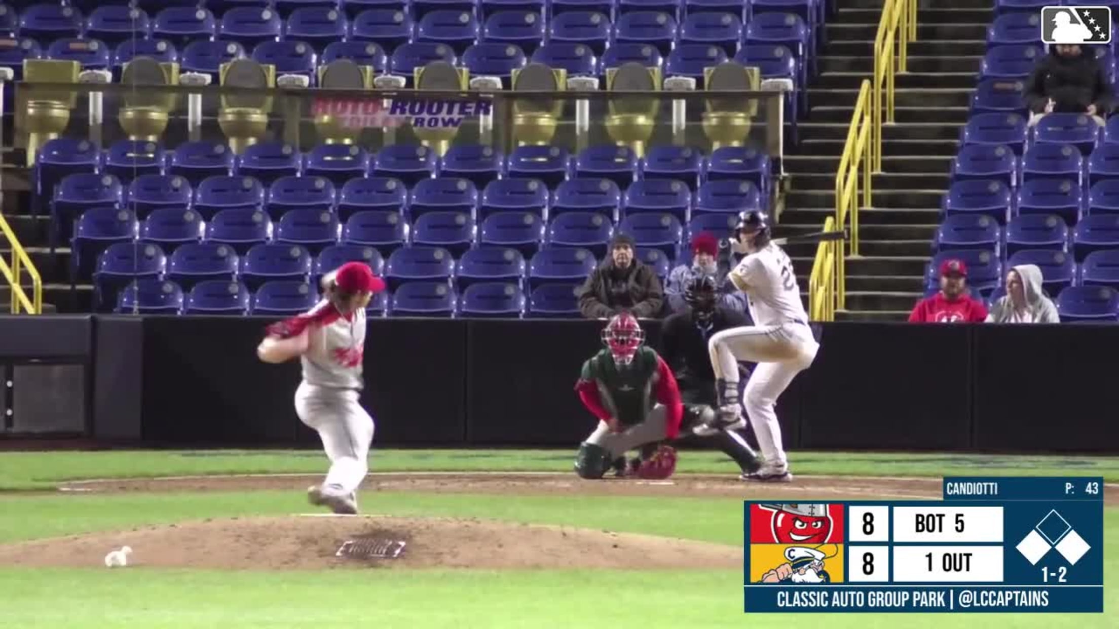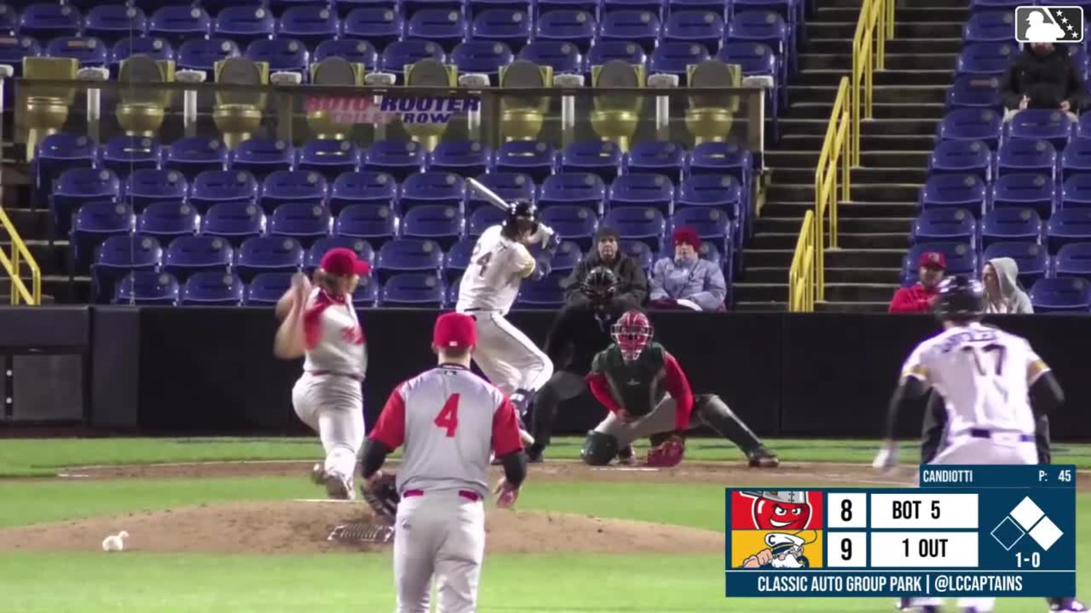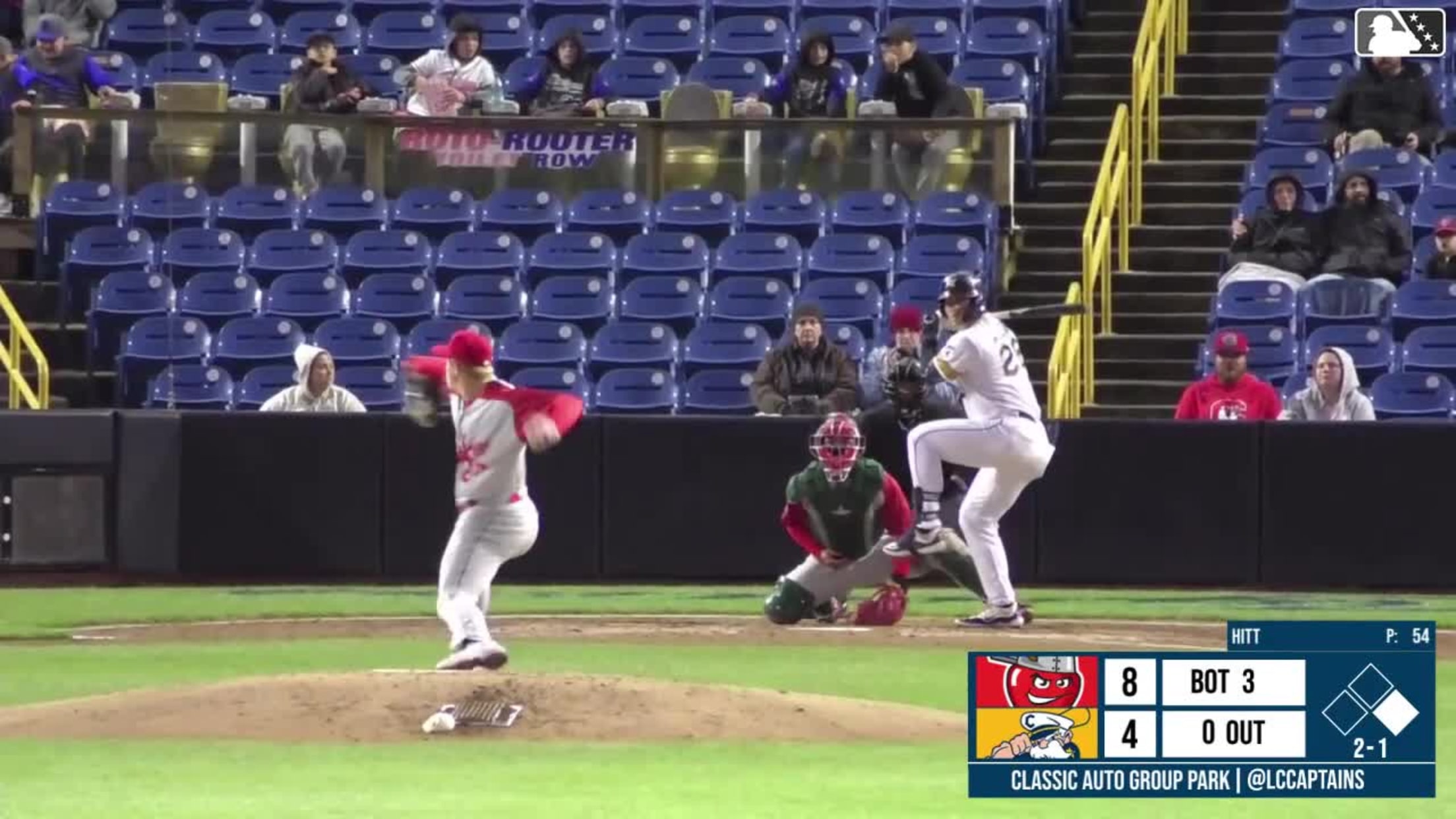 Luke Hill out on a sacrifice fly to center fielder Kasen Wells. Aaron Walton scores.
