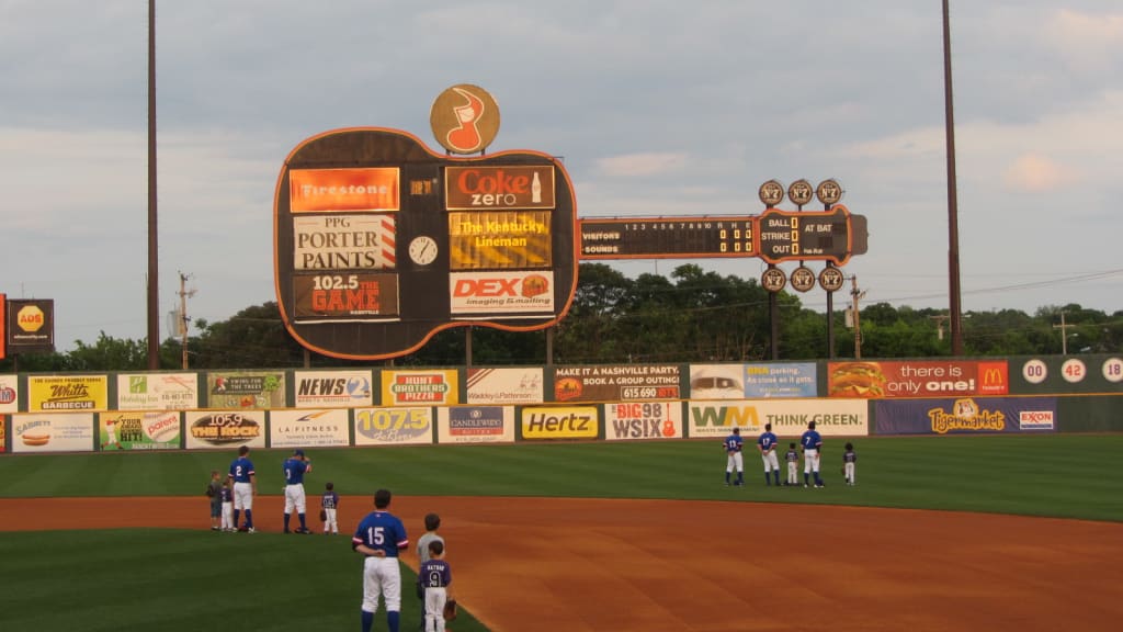 In 1862, the occupying Union Army constructed Fort Negley south of Nashville’s city center. One-hundred-sixteen years later the grounds of Fort Negley became home to a different sort of impressive fortification, Greer Stadium. In its later years the ballpark exuded a funky charm, with its ramshackle concourse, faded blue seats, and a backdrop of riotously colored outfield billboards. Towering above it all was the ballpark’s legendary guitar-shaped scoreboard, ringed in red and topped with the Sounds' musical note baseball logo.