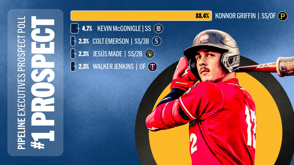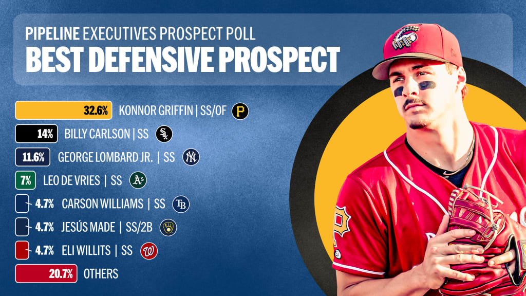 This one was a runaway. Konnor Griffin got twice as much support as last year’s survey leader, Roman Anthony. And Kevin McGonigle, a favorite to win AL Rookie of the Year Award honors, was the only other prospect to receive multiple votes. It’s understandable why, with Griffin playing across three levels in his first full season of pro ball and finishing with a combined .941 OPS to go along with 21 homers and 65 steals, all while playing a much better shortstop than many expected. Our 2025 MLB Pipeline Hitting Prospect of the Year has been so good so fast that he’s going to get a very long look this spring, and enough people think he’ll earn an Opening Day roster spot that some voted for him in the Rookie of the Year survey.