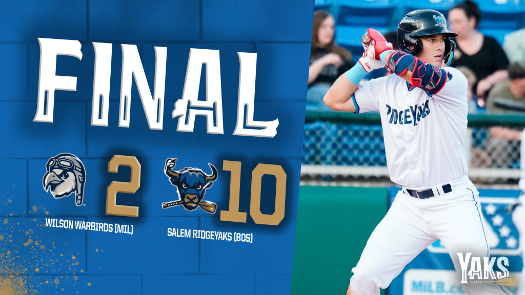 SALEM Va. – Led by Kleyver Salazar’s 4-for-5 day with two RBIs, the Salem RidgeYaks (3-1)
