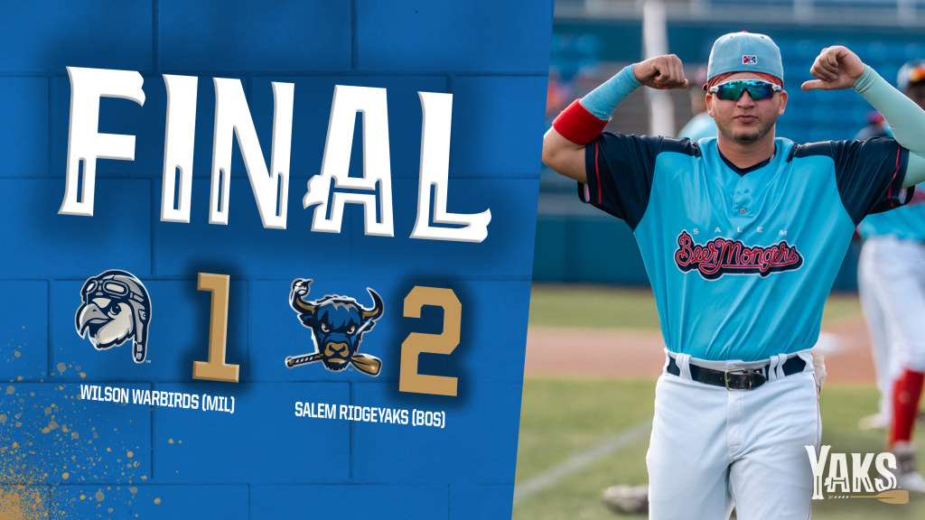 SALEM, Va. – Led by D’Angelo Ortiz’s two-hit day and four members of the Salem pitching staff not allowing an earned run, the Salem RidgeYaks (5-1) won their fourth consecutive contest in a 2-1 victory over the Wilson Warbirds (2-4) on Thursday evening at Carilion Clinic Field at Salem Memorial Ballpark.